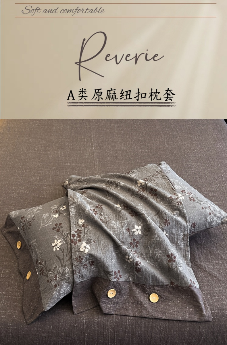 商品名称:梦舒羽 2025新款原麻纽扣枕套宿舍单只枕芯套枕头套一对装枕芯内胆套 山花浪漫
