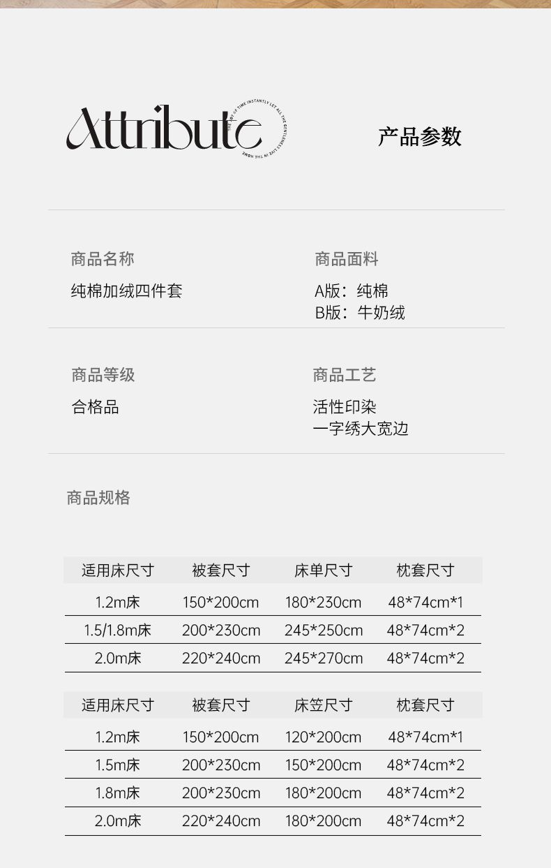 1.2m夹棉床盖款四件套 | ¥120.00 |