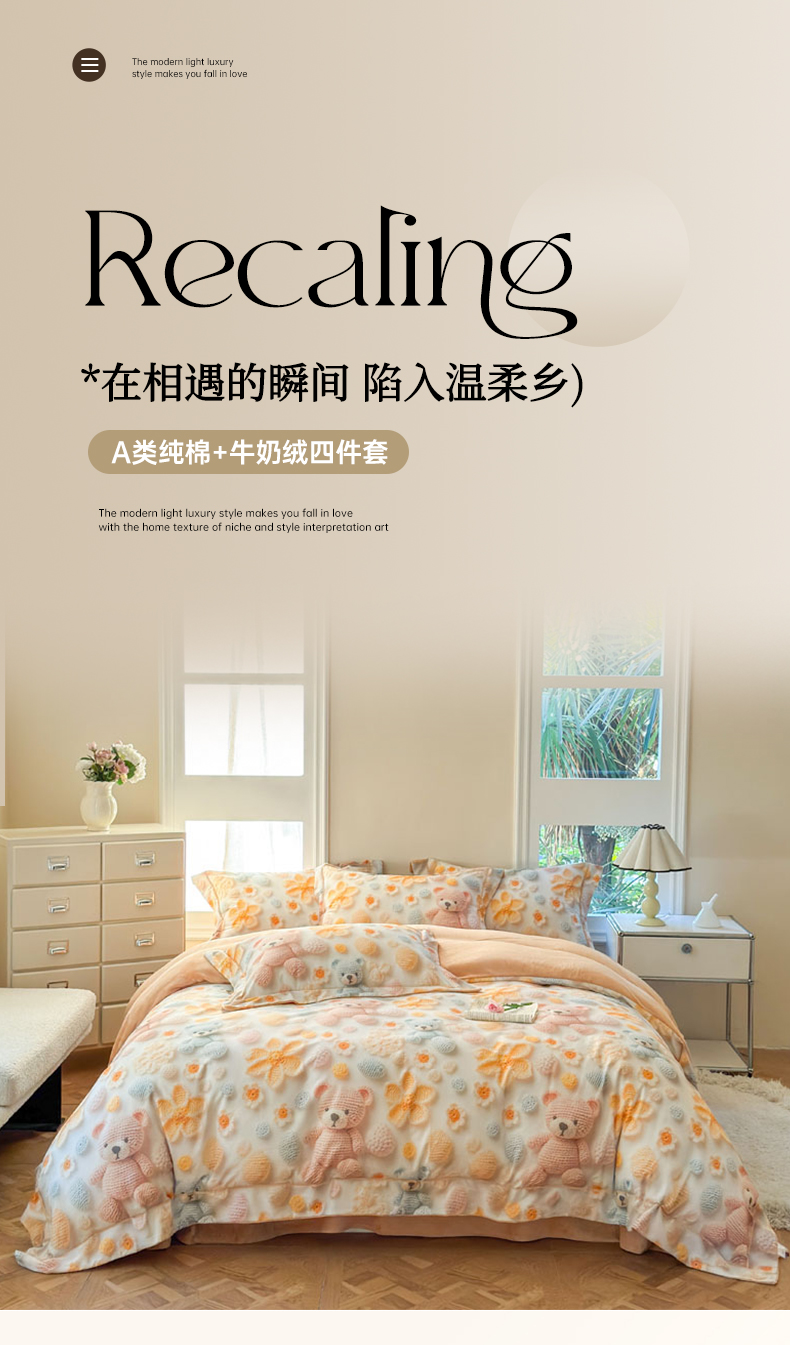 当前位置: 91家纺网 > 商品网购 > 床品套件 > 四件套 > 牛奶绒四件套 > 7V 2025新款纯棉加绒四件套 眠眠笔记
