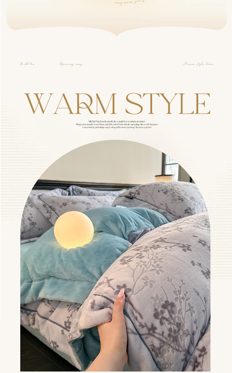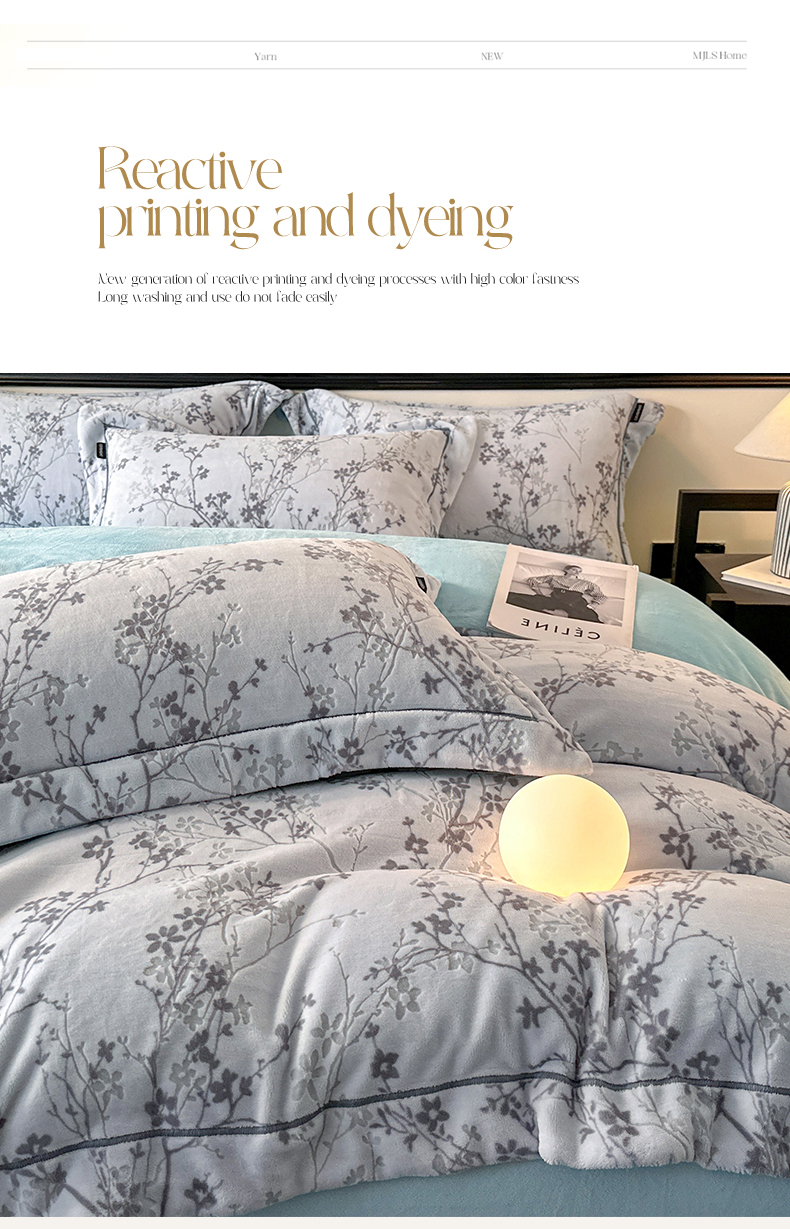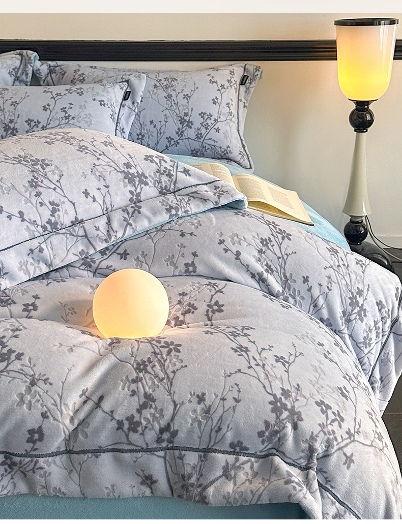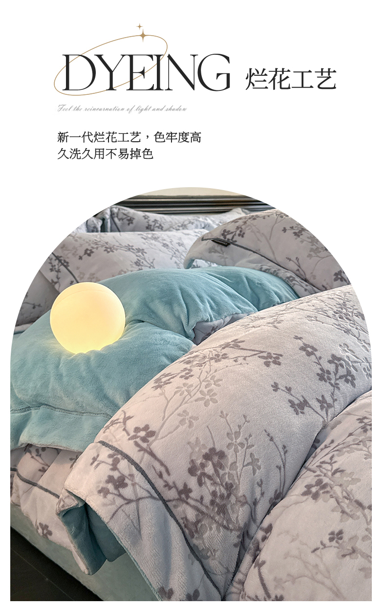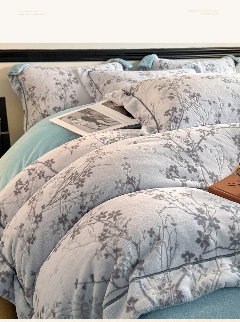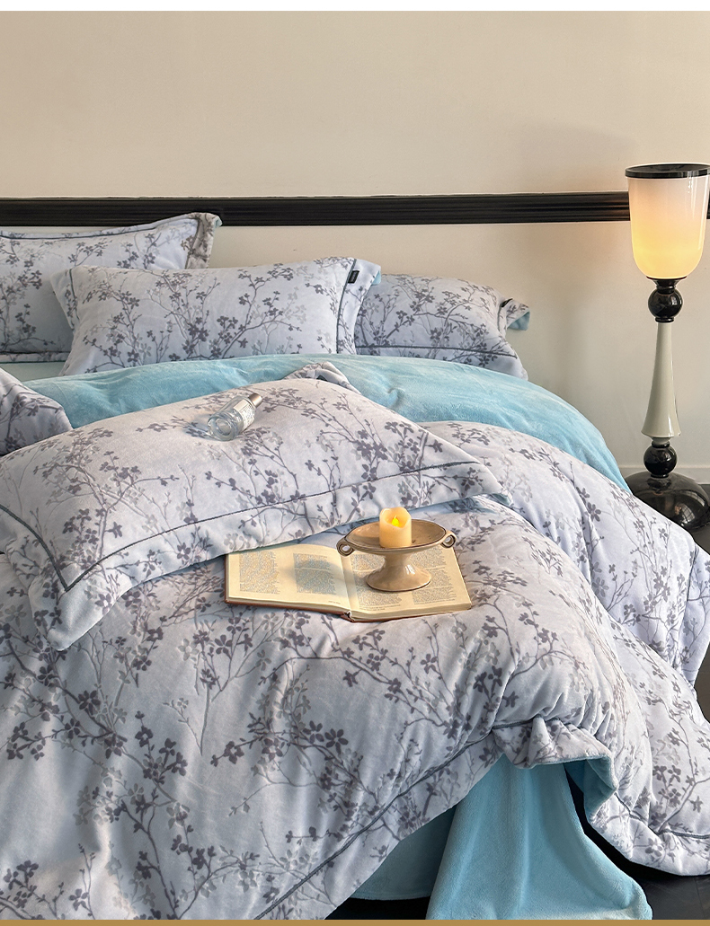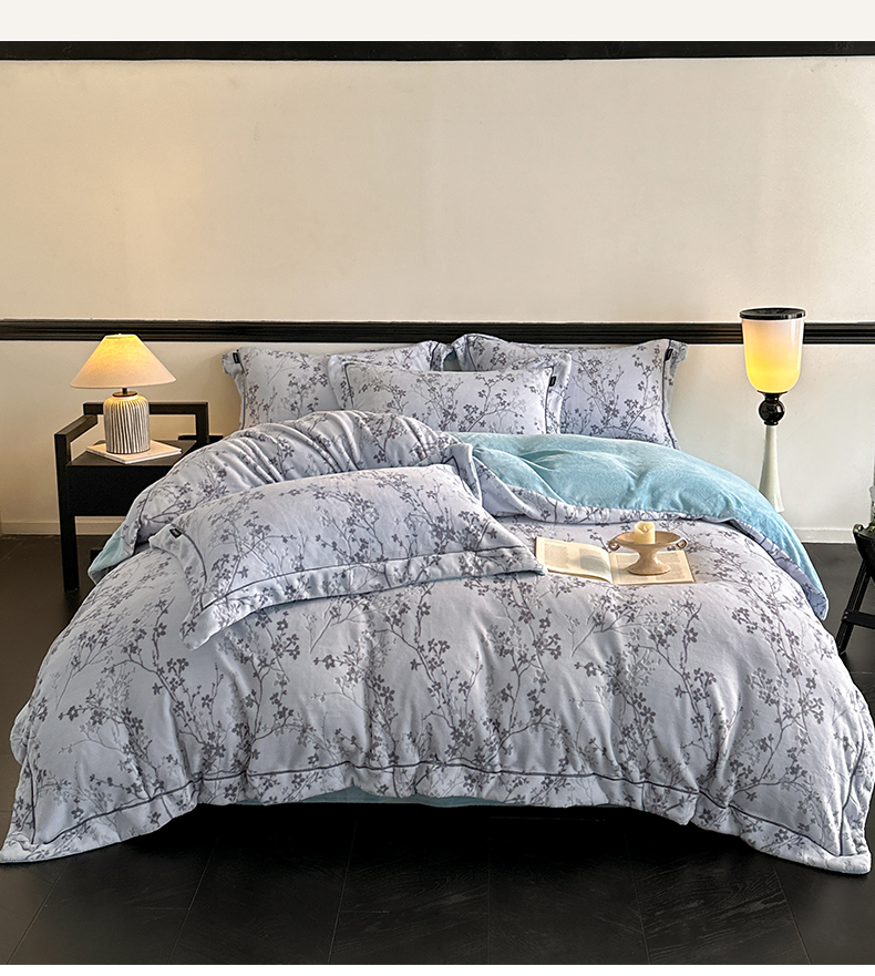 盛秋家纺 2025新款佩拉着色烂花牛奶绒四件套【简约风格】 山茶花语-蓝
