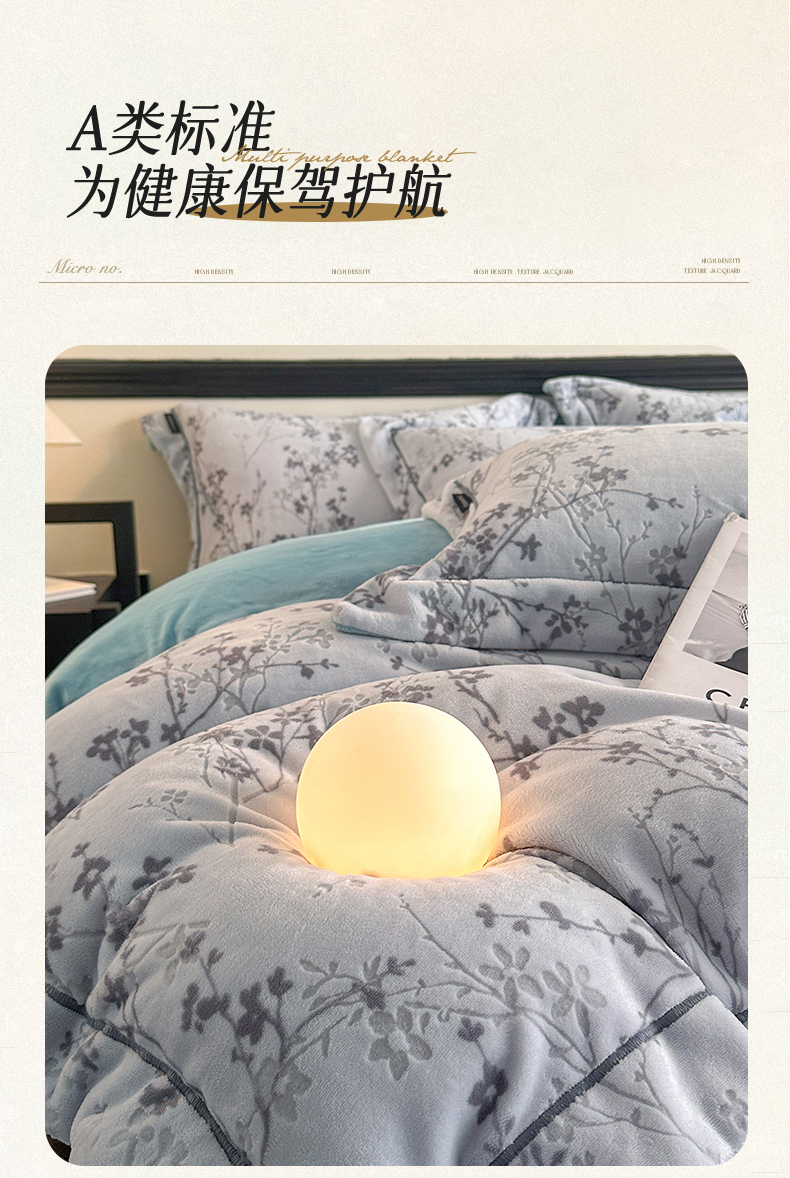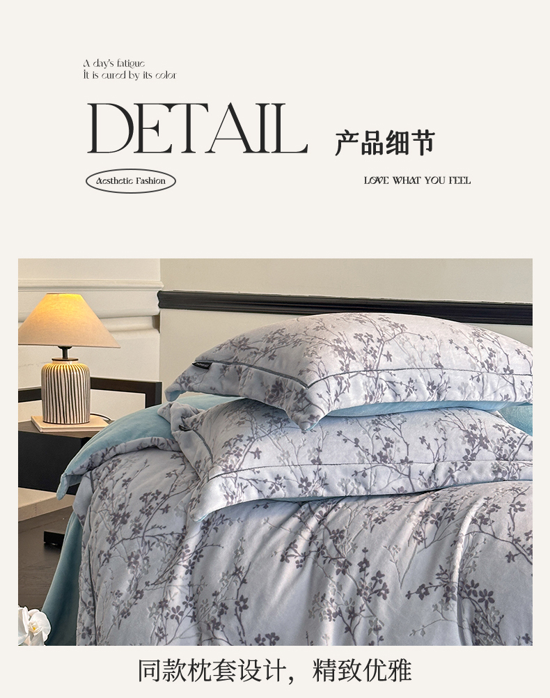 商品名称:盛秋家纺 2025新款佩拉着色烂花牛奶绒四件套【简约风格】 山茶花语-蓝