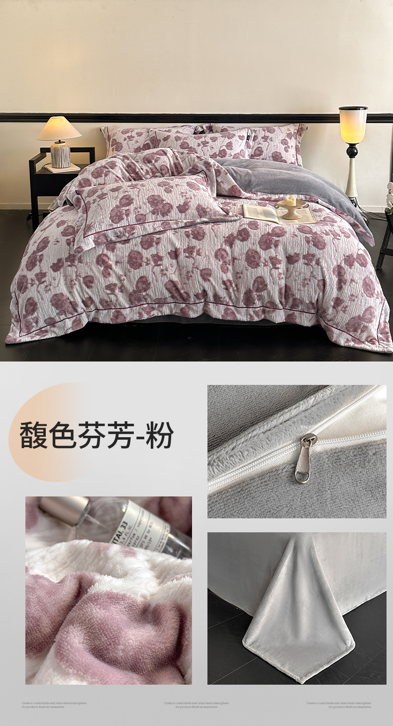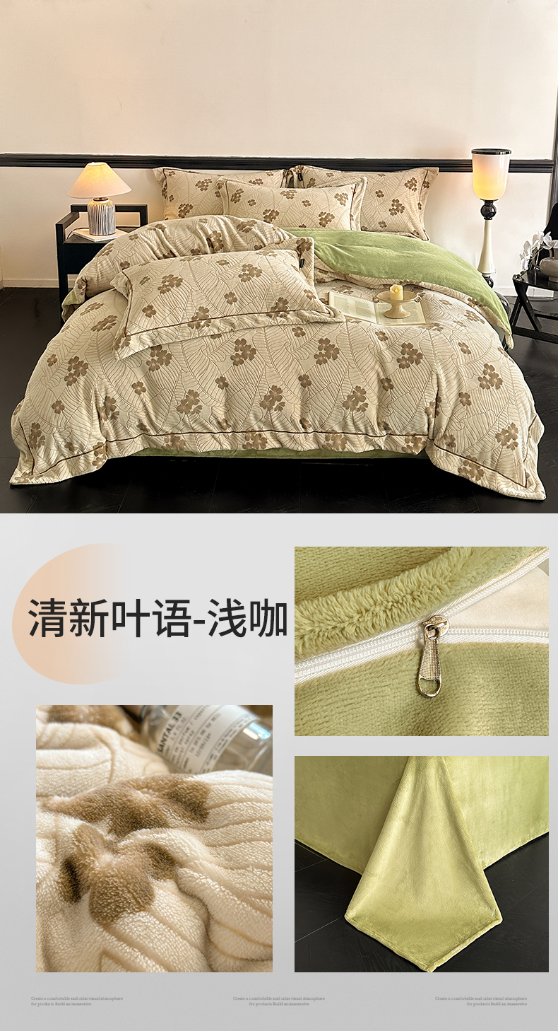 (总)盛秋家纺 2025新款佩拉着色烂花牛奶绒四件套【简约风格】,山茶花语-咖,素影-灰,馥色芬芳-粉,花溪听雨-咖,清新叶语-浅咖,山茶花语-粉,山茶花语-蓝,素影-浅咖