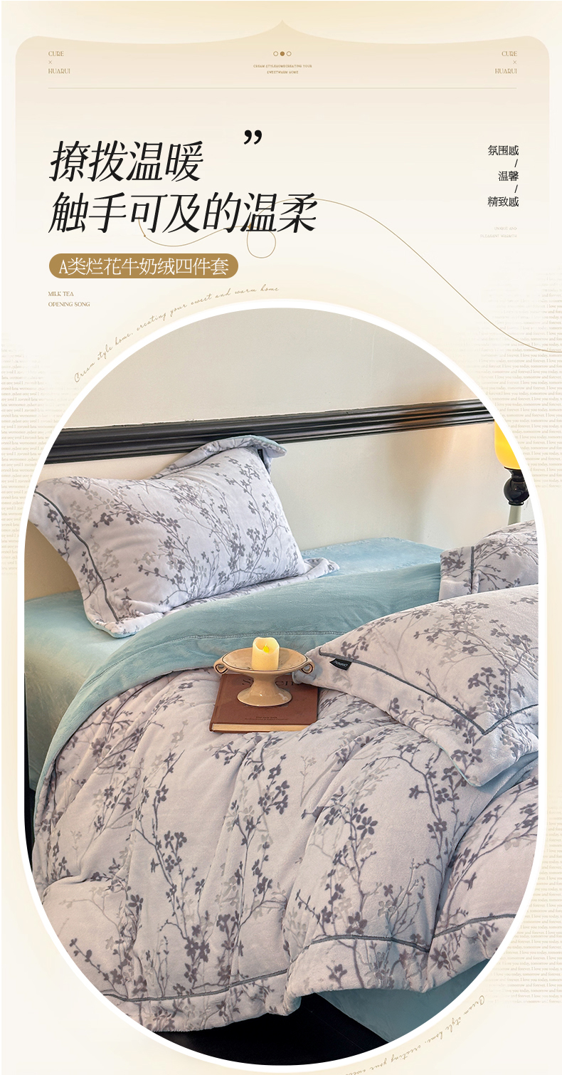 (总)盛秋家纺 2025新款佩拉着色烂花牛奶绒四件套【轻奢风格】,山茶花语-咖,素影-灰,馥色芬芳-粉,花溪听雨-咖,清新叶语-浅咖,山茶花语-粉,山茶花语-蓝,素影-浅咖