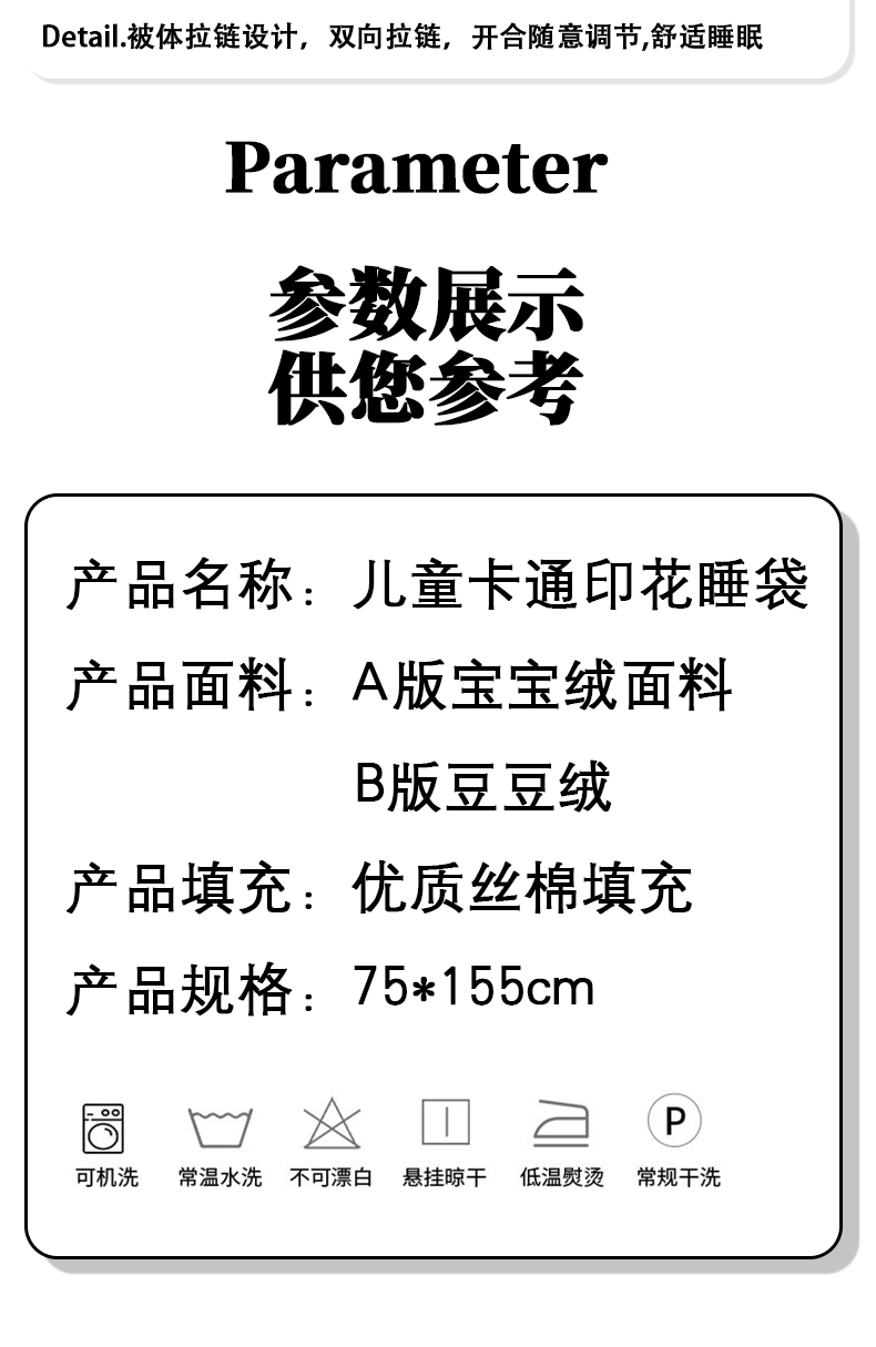 商品名称:沁童儿童用品店 2025新款儿童3D立体印花A版宝宝绒+B版豆豆绒儿童睡袋 企鹅宝宝
