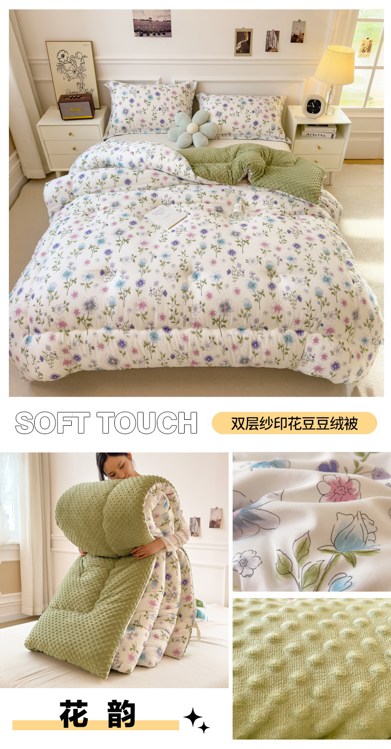 • 91家纺网 家纺一手货源 找家纺 梵克保罗 2025秋冬新品10A抗菌豆豆绒冬被被子被芯 郁金香