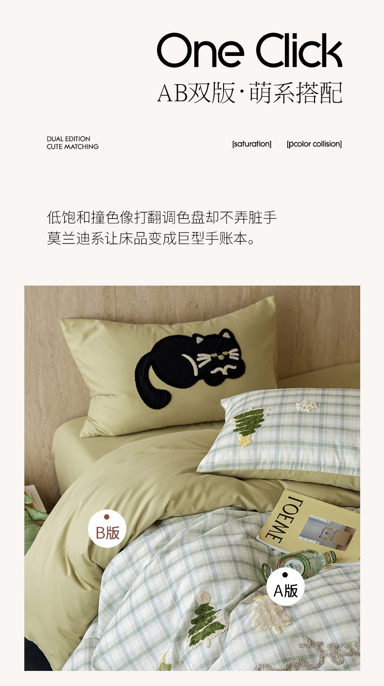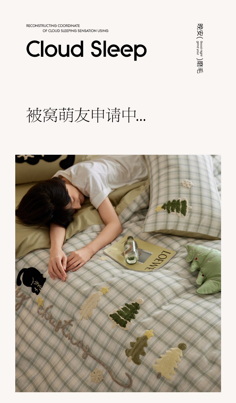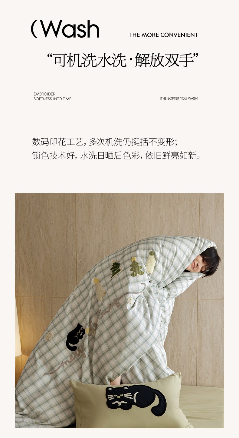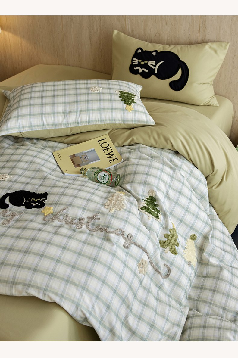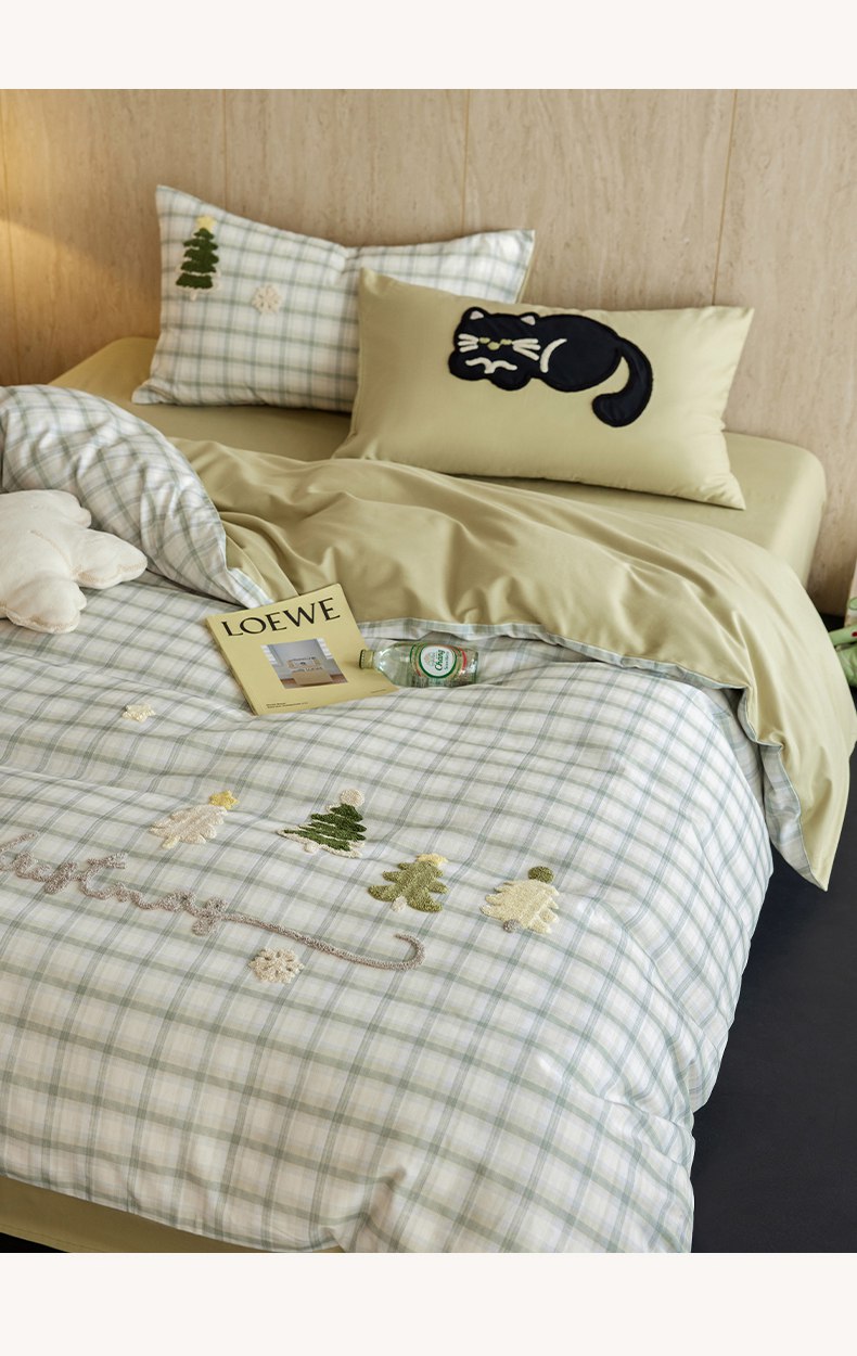 当前位置: 91家纺网 > 商品网购 > 床品套件 > 四件套 > 全棉普通四件套 > 风向标家纺 2025新款全棉50s磨毛数码印花毛巾绣四件套-风格一 绿色圣诞猫