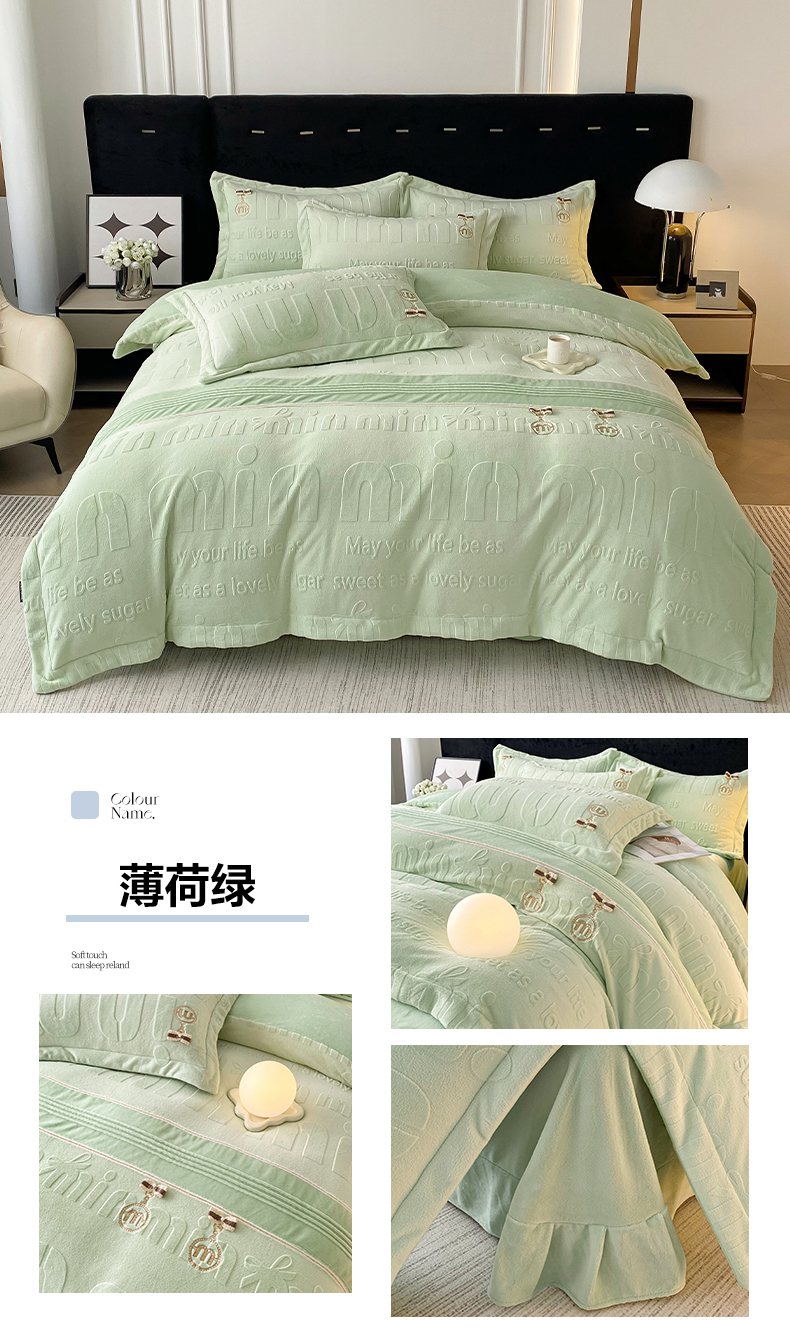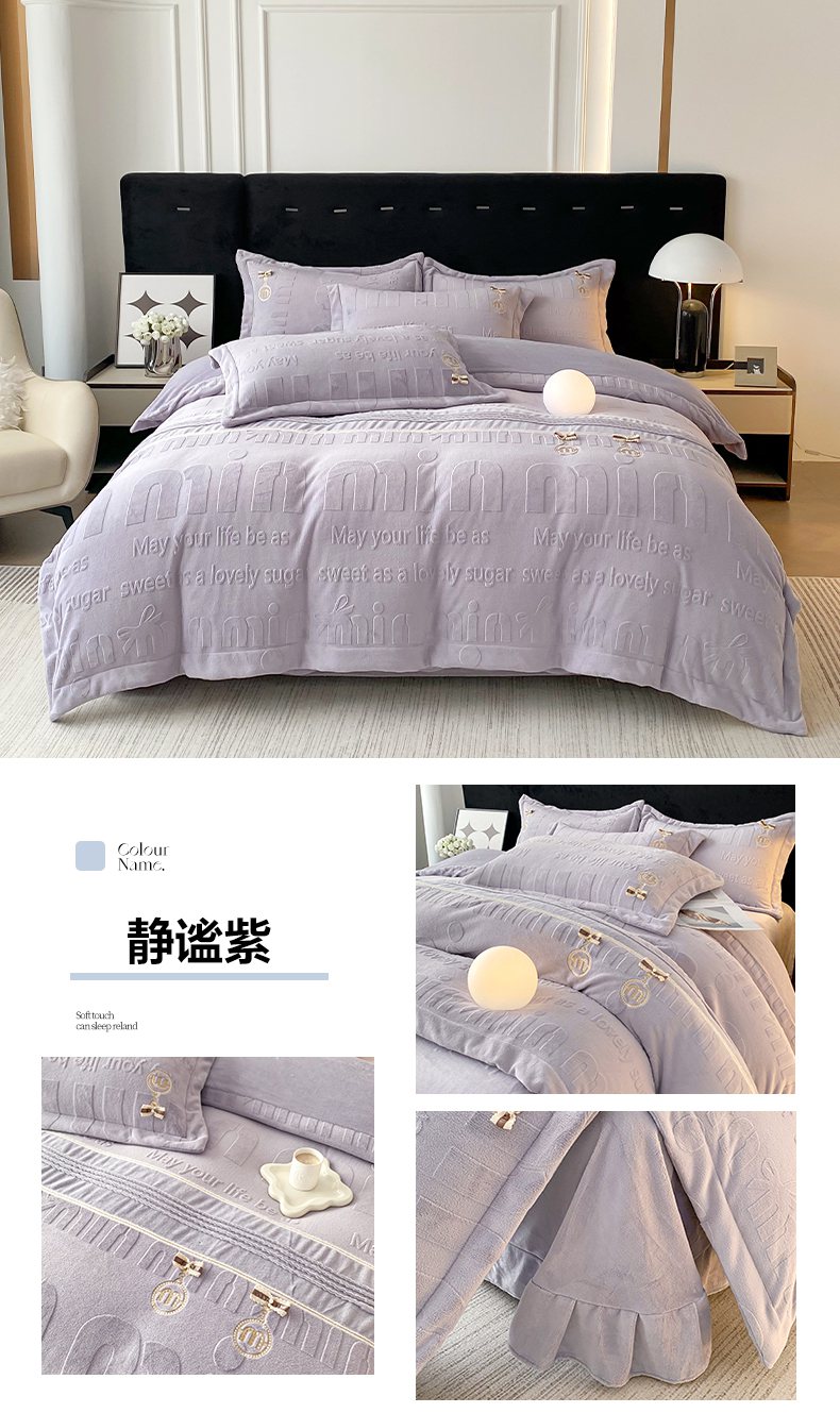 当前位置: 91家纺网 > 商品网购 > 床品套件 > 四件套 > 牛奶绒四件套 > 梵克保罗 2025新款法式轻奢全消光牛奶绒雕花打裥刺绣贴布绣MIU四件套-缪斯(带包装) 缪斯-宁静粉