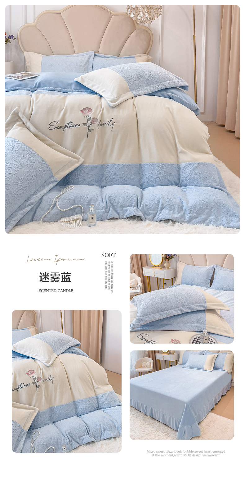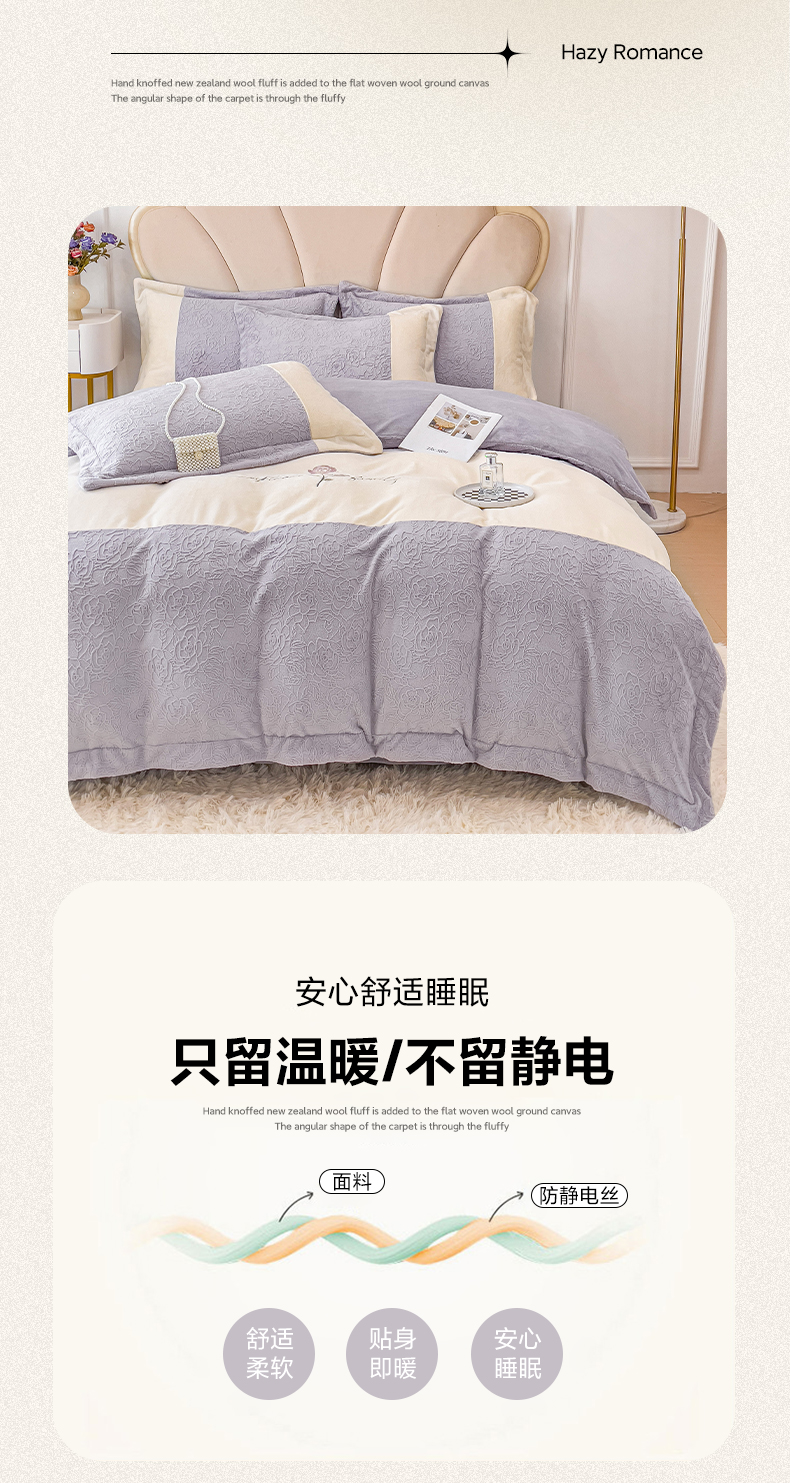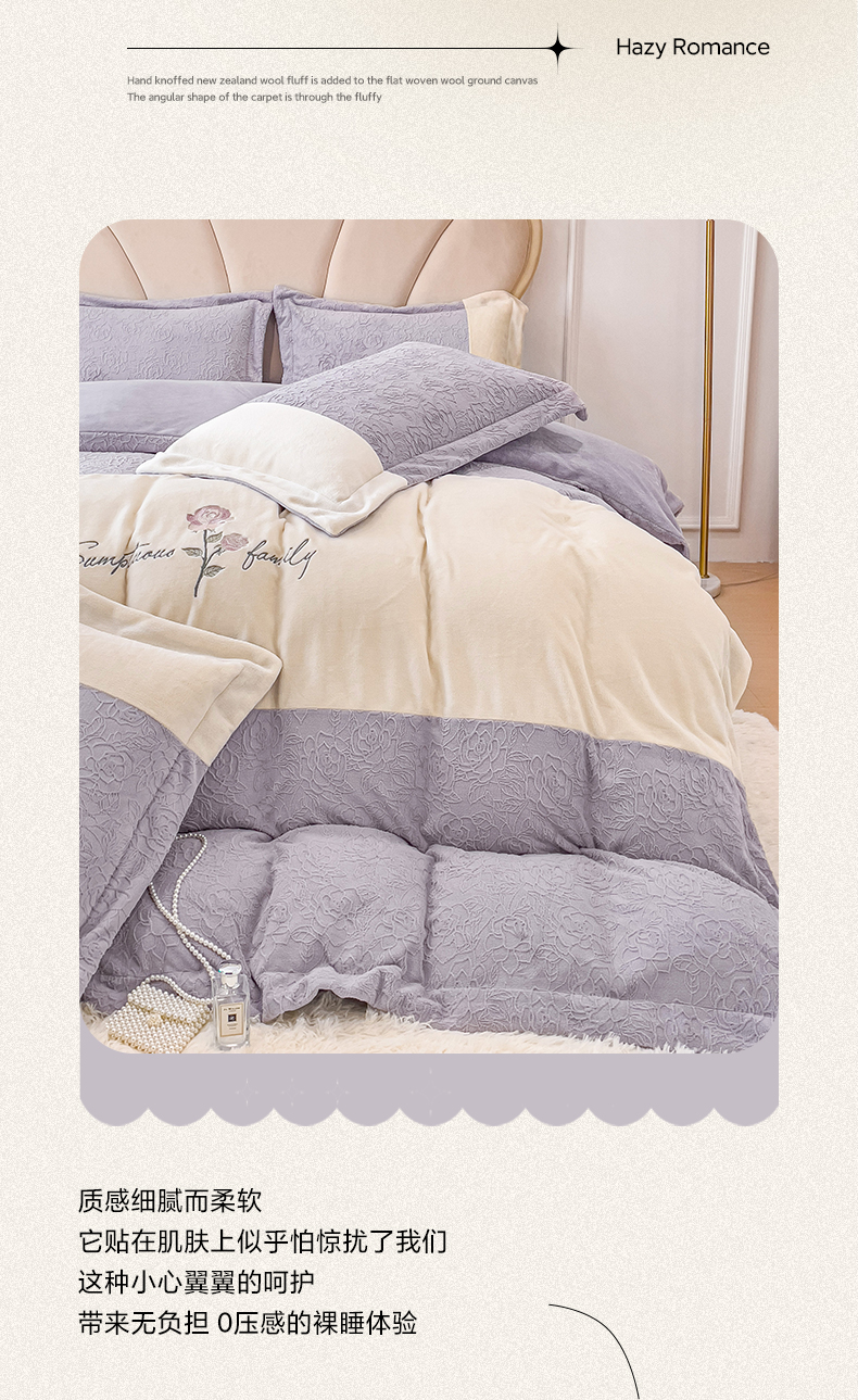 商品名称:梵克保罗 2025秋冬新款全消光牛奶绒雕花拼接刺绣款四件套-假日玫瑰(含买家秀) 组合图