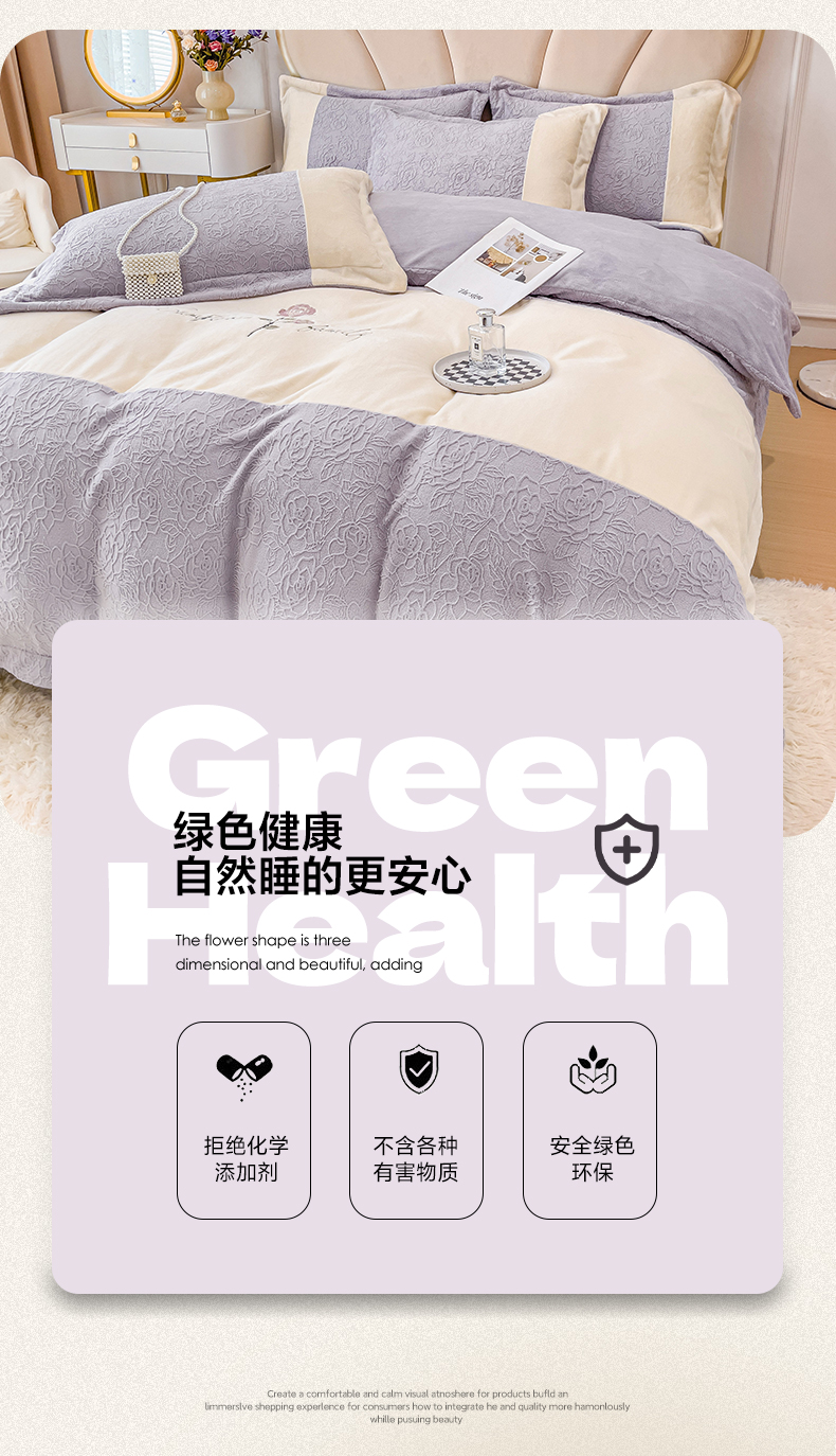梵克保罗 2025秋冬新款全消光牛奶绒雕花拼接刺绣款四件套-假日玫瑰(含买家秀) 组合图