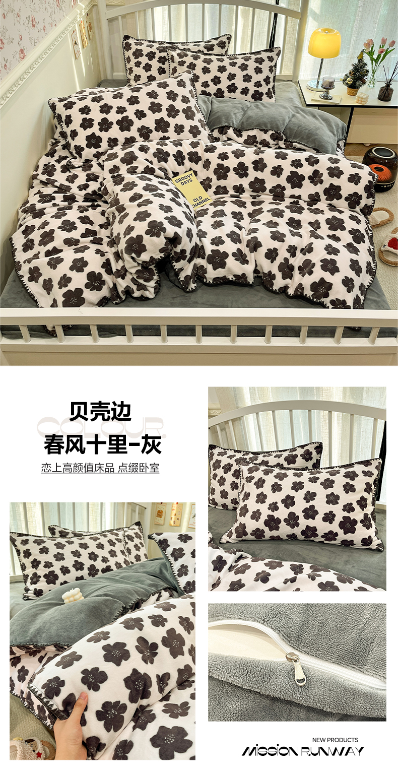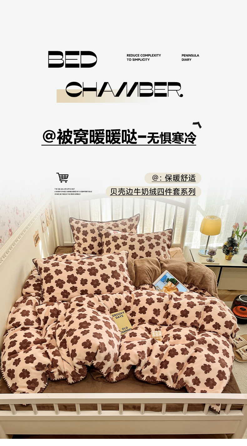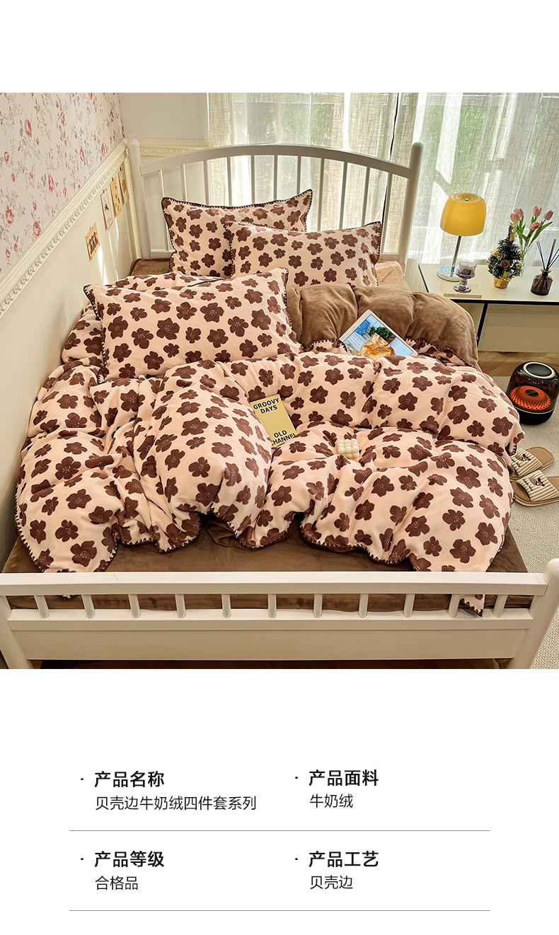 当前位置: 91家纺网 > 商品网购 > 床品套件 > 四件套 > 牛奶绒四件套 > 雅居纺家纺 2025新款贝壳边牛奶绒四件套 贝壳边 春风十里-咖