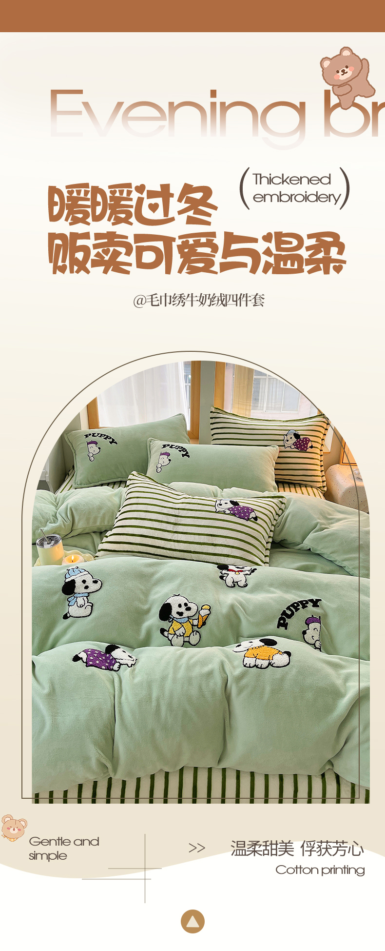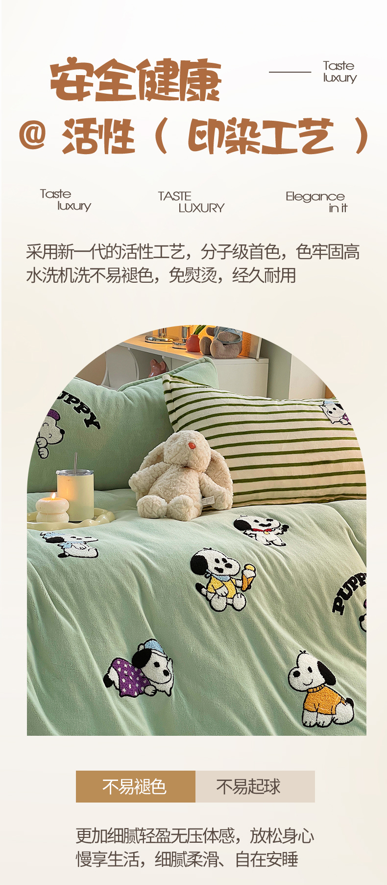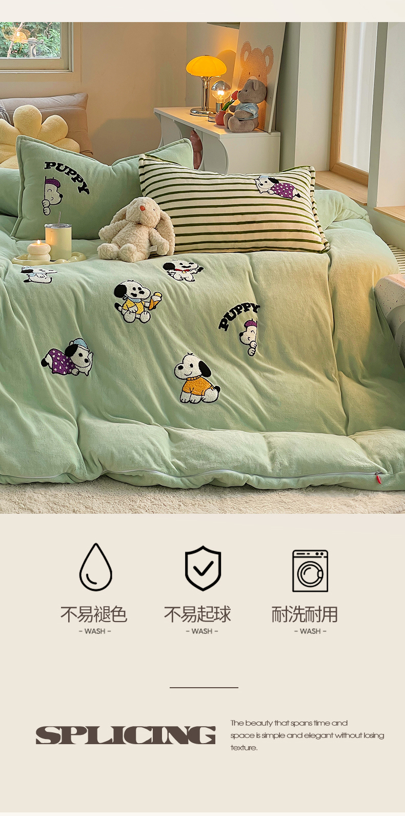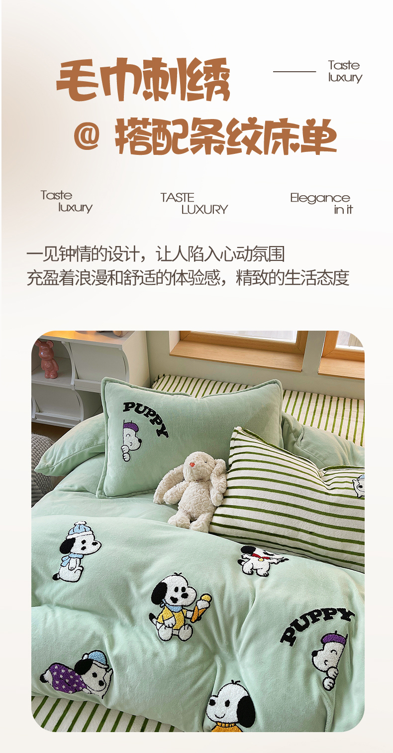 炫拼家纺 2025新款高克重牛奶绒满版毛巾绣卡通加厚四件套-糯米系列 糯米-狗狗的一天