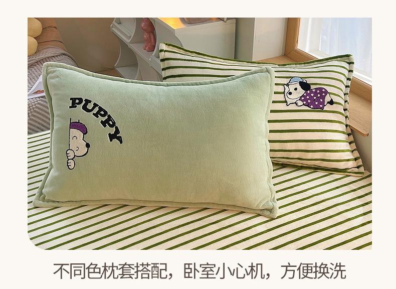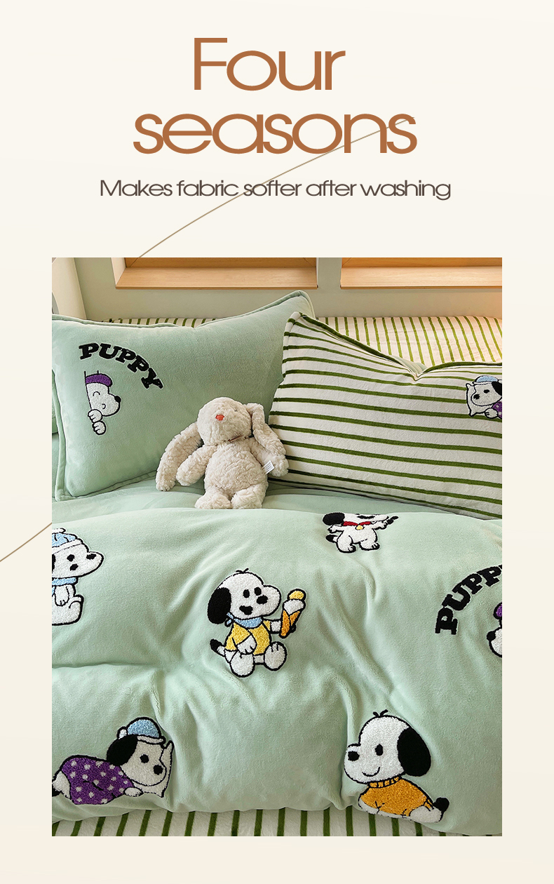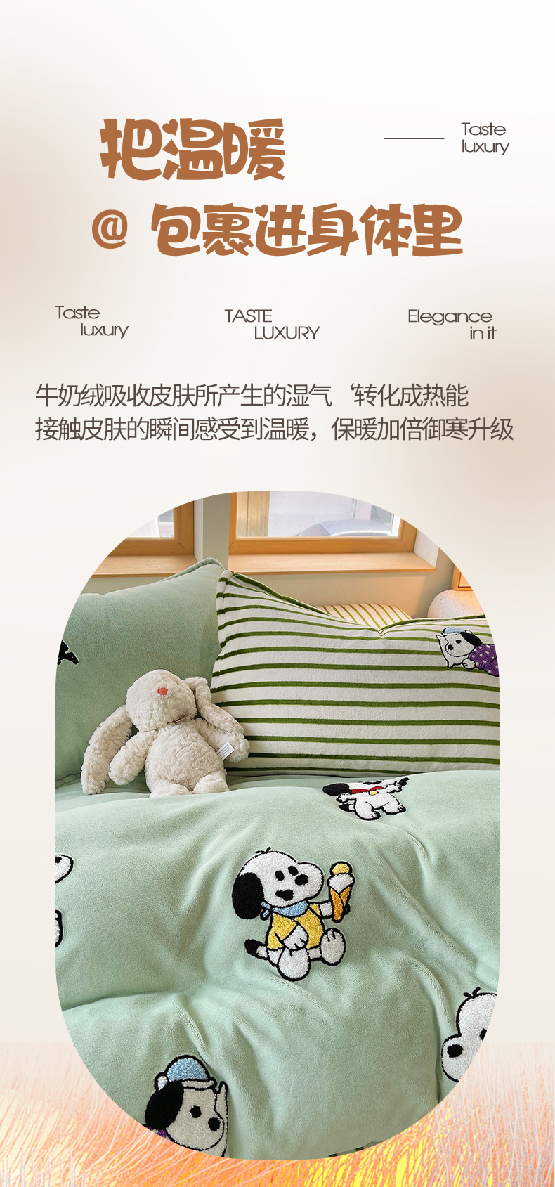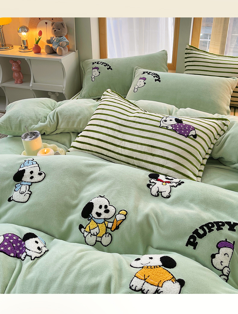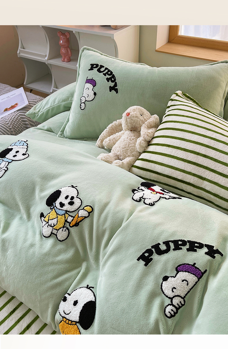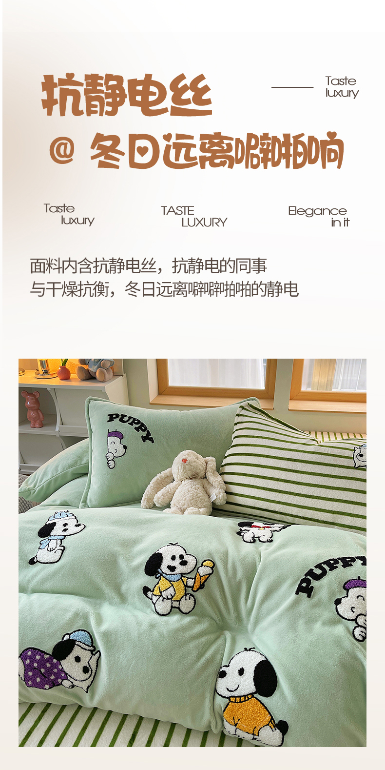 炫拼家纺 2025新款高克重牛奶绒满版毛巾绣卡通加厚四件套-糯米系列 糯米-狗狗的一天