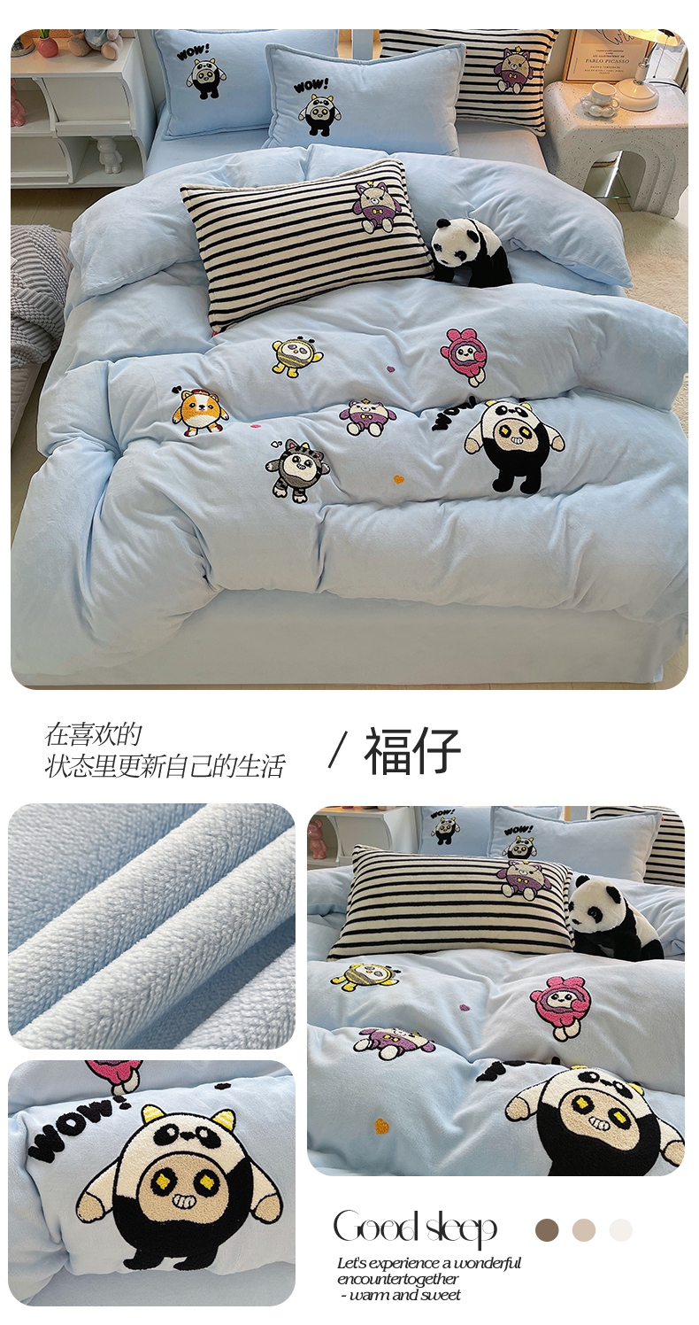 (总)炫拼家纺 2025新款高克重牛奶绒毛巾绣卡通四件套-可孚系列,可孚-阳光熊猫-灰,可孚-钓鱼的猫,可孚-咖啡猫,可孚-美式熊,可孚-狮王辛巴,可孚-条纹狗,可孚-阳光熊猫-红