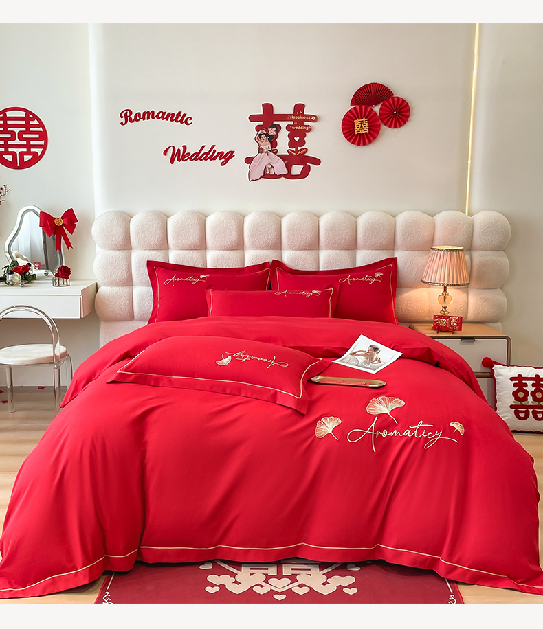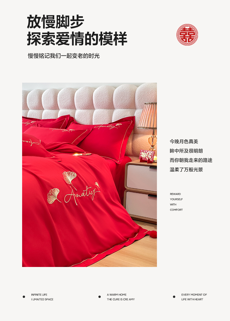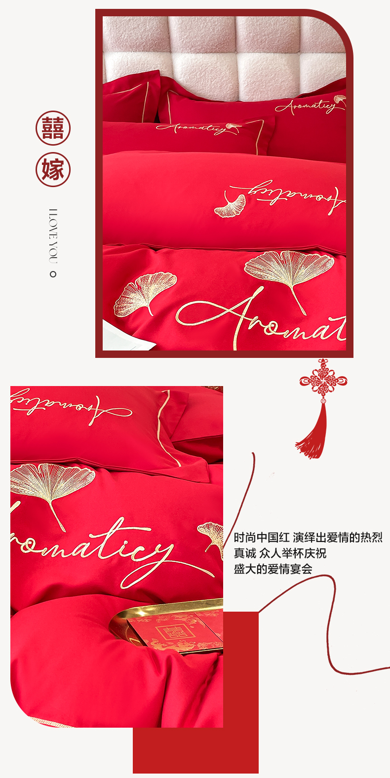 花愿(原花纪) 2026新款水洗棉刺绣婚庆四件套系列 幸福