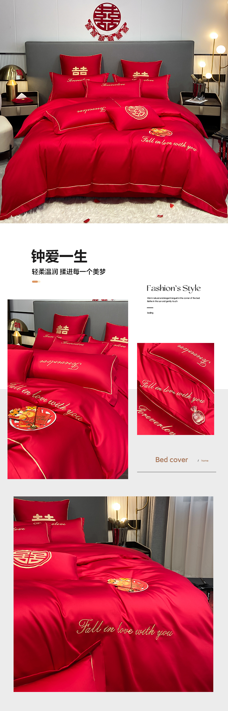 (总)花愿(原花纪) 2026新款婚庆刺绣四件套(礼盒款),浪漫花园-红,浪漫一生,龙凤呈祥,满心欢喜,天赐良缘,喜气洋洋,喜结良缘