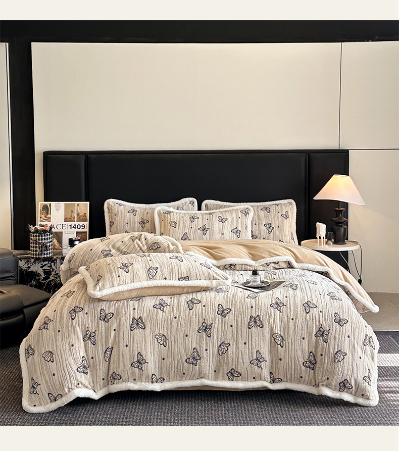 (总)涵宸家纺 2025新款全棉磨毛刺绣四件套系列-花蝴蝶,花蝴蝶-灰,花蝴蝶-奶白,花蝴蝶-浅粉