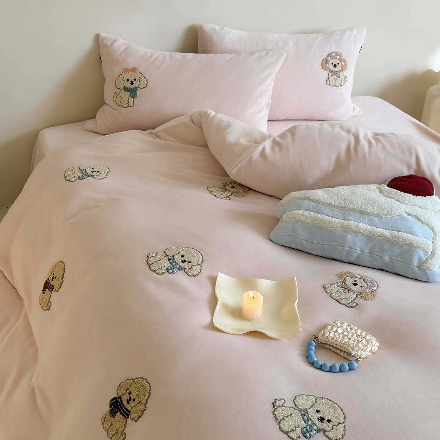 当前位置: 91家纺网 > 商品网购 > 床品套件 > 四件套 > 牛奶绒四件套 > 鹿班家居 2025新款冬季高克重牛奶绒毛巾绣系列四件套-布迪狗狗 粉色