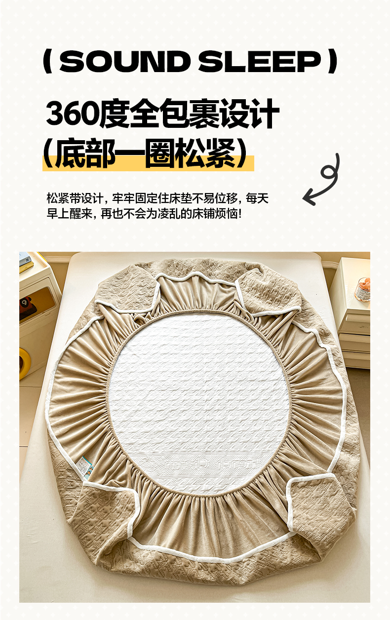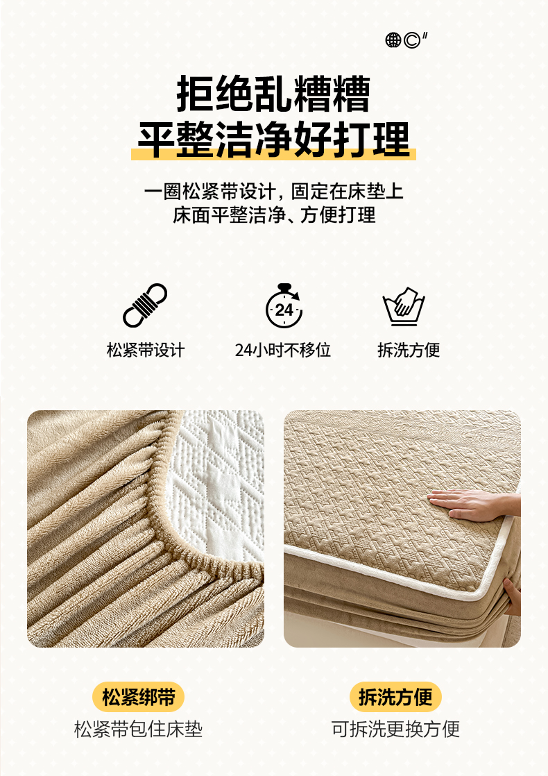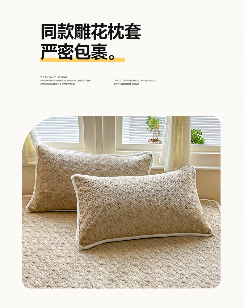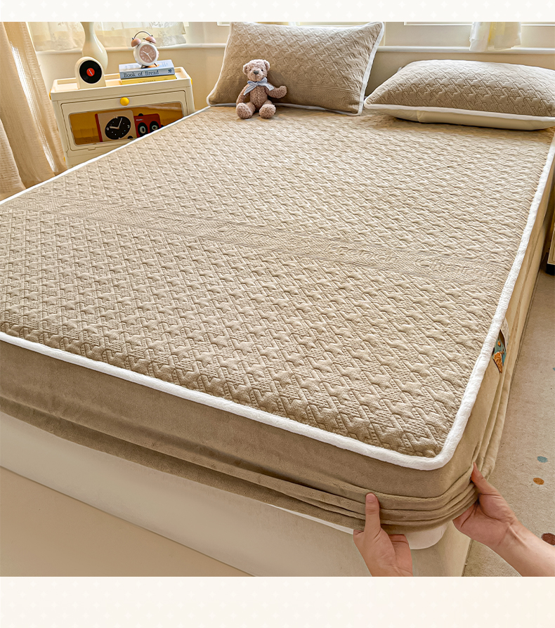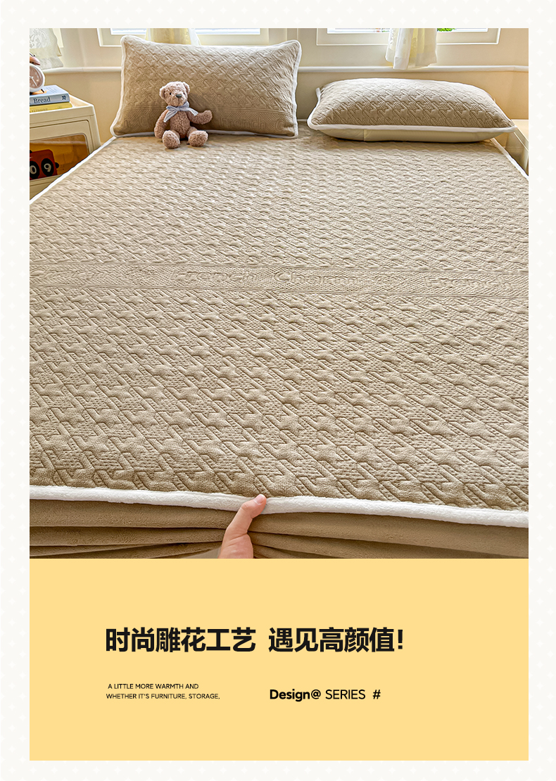 • 91家纺网 家纺一手货源 找家纺 卡伦家纺 2025新款抗菌雕花牛奶绒千鸟格夹棉床笠系列 千鸟格床笠-咖