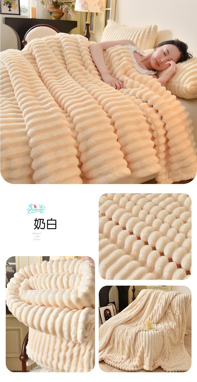 商品名称:圣靓 2025新款高克重牛奶绒抽条毛毯 奶白