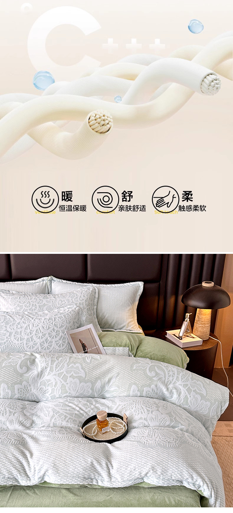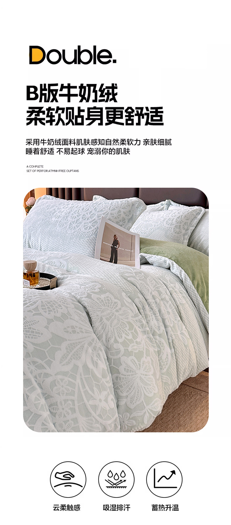 (总)家贝爱 2025新款230克烂花雕花牛奶绒四件套