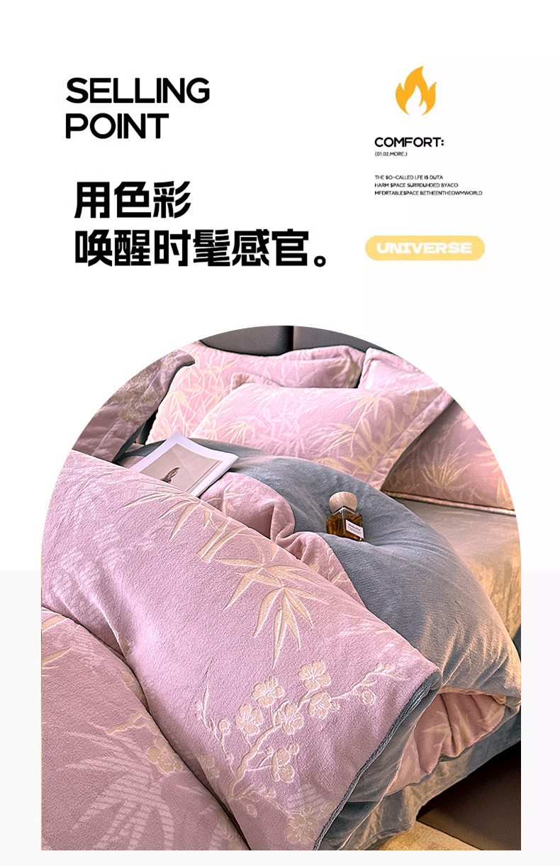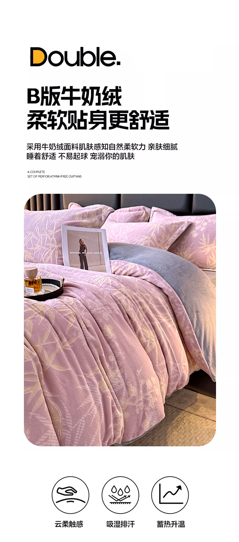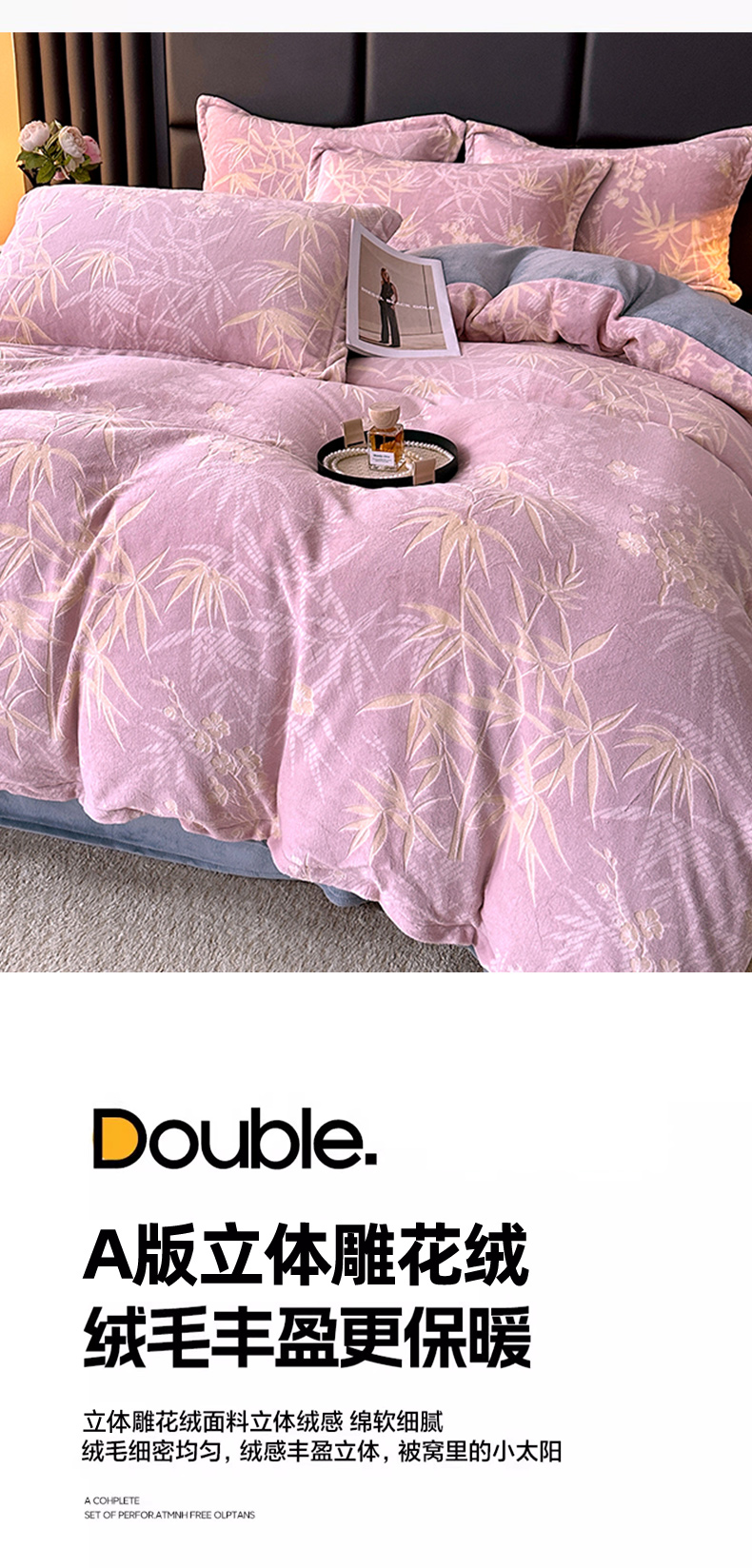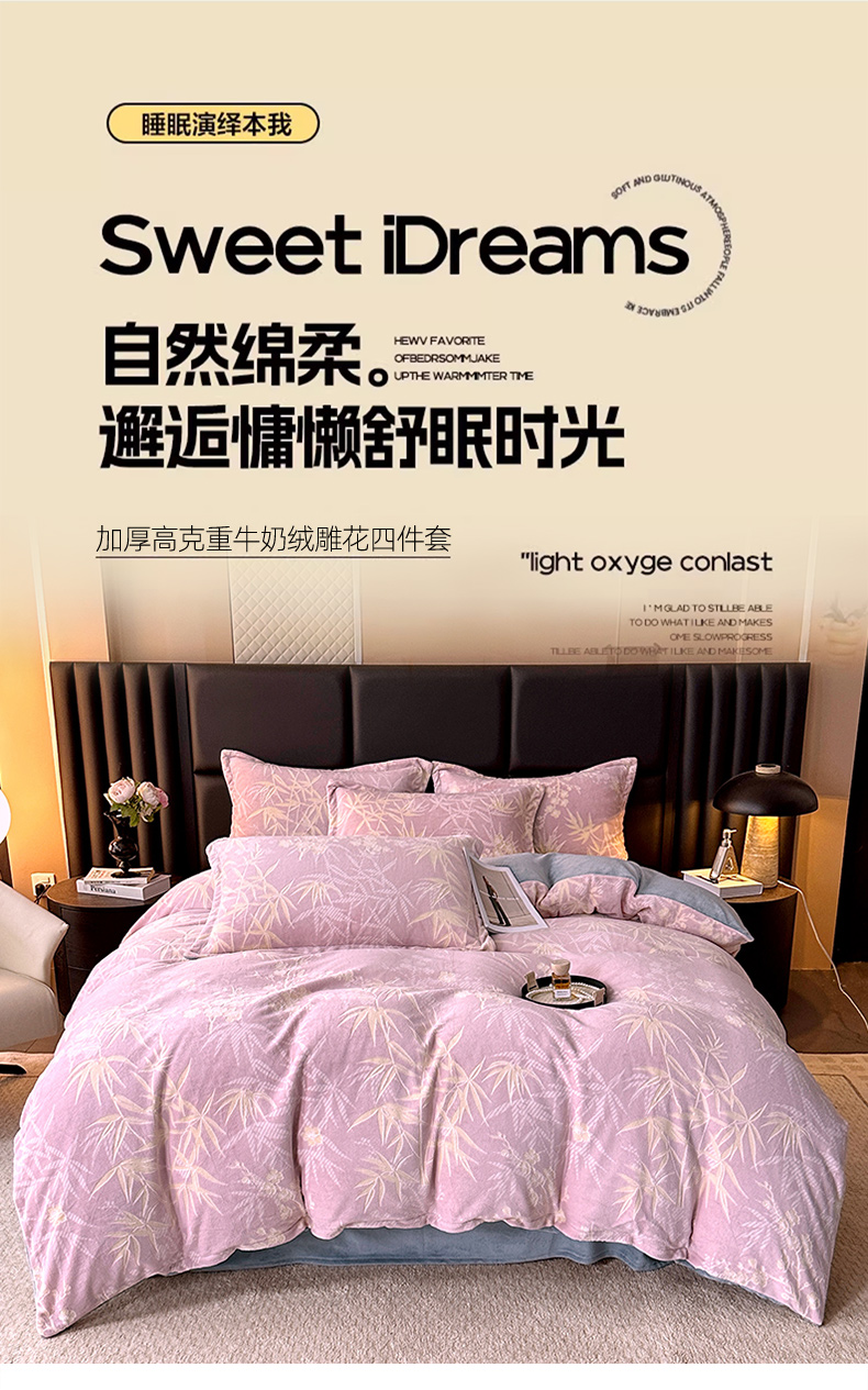 当前位置: 91家纺网 > 商品网购 > 床品套件 > 四件套 > 牛奶绒四件套 > 家贝爱 2025新款230克烂花雕花牛奶绒四件套 竹意豆沙