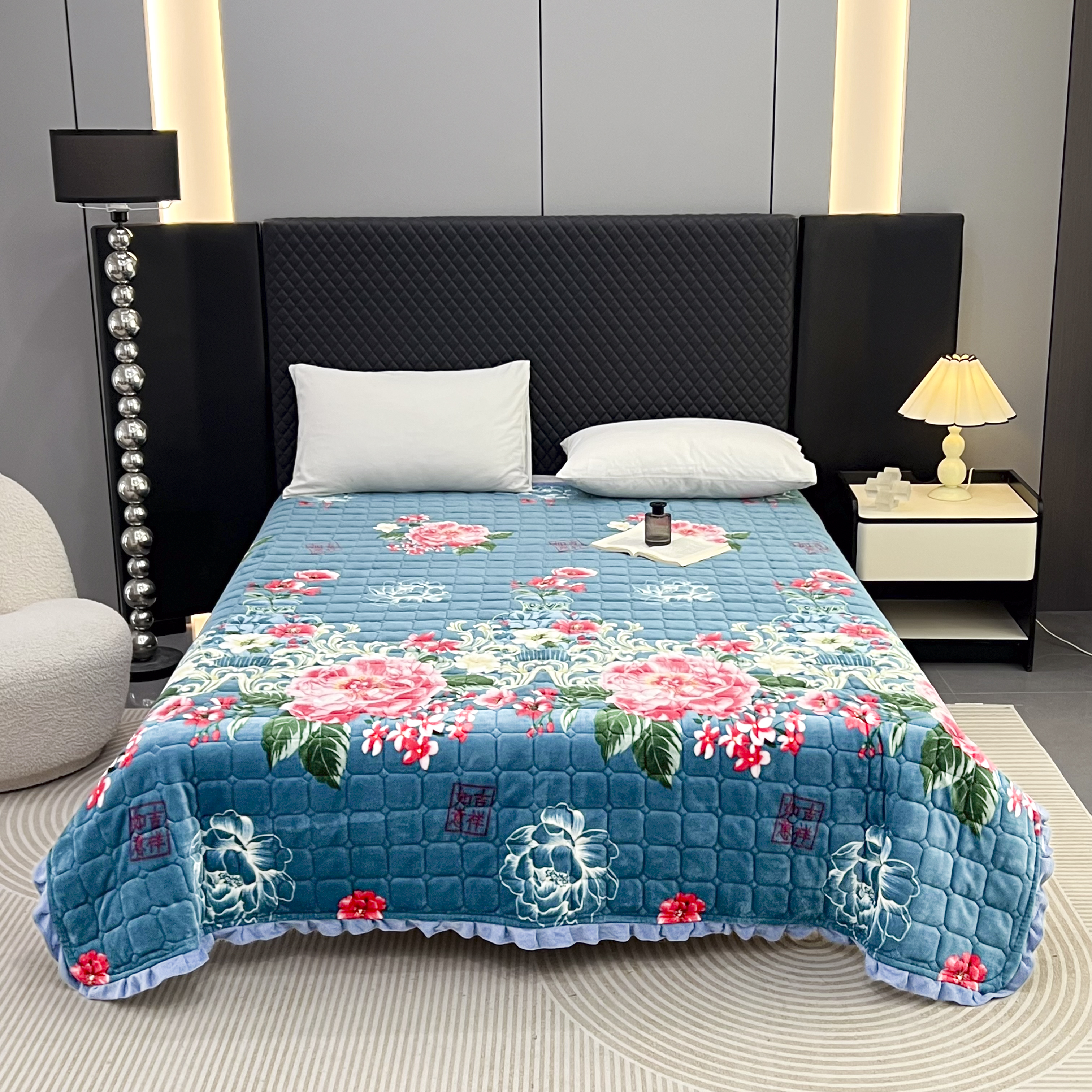 有品 2025年牛奶绒花边5D跑量款夹棉床盖 吉祥如意