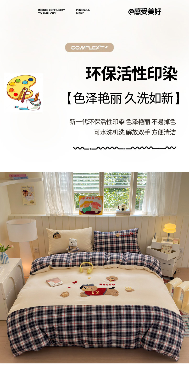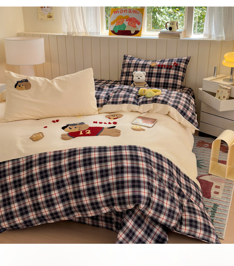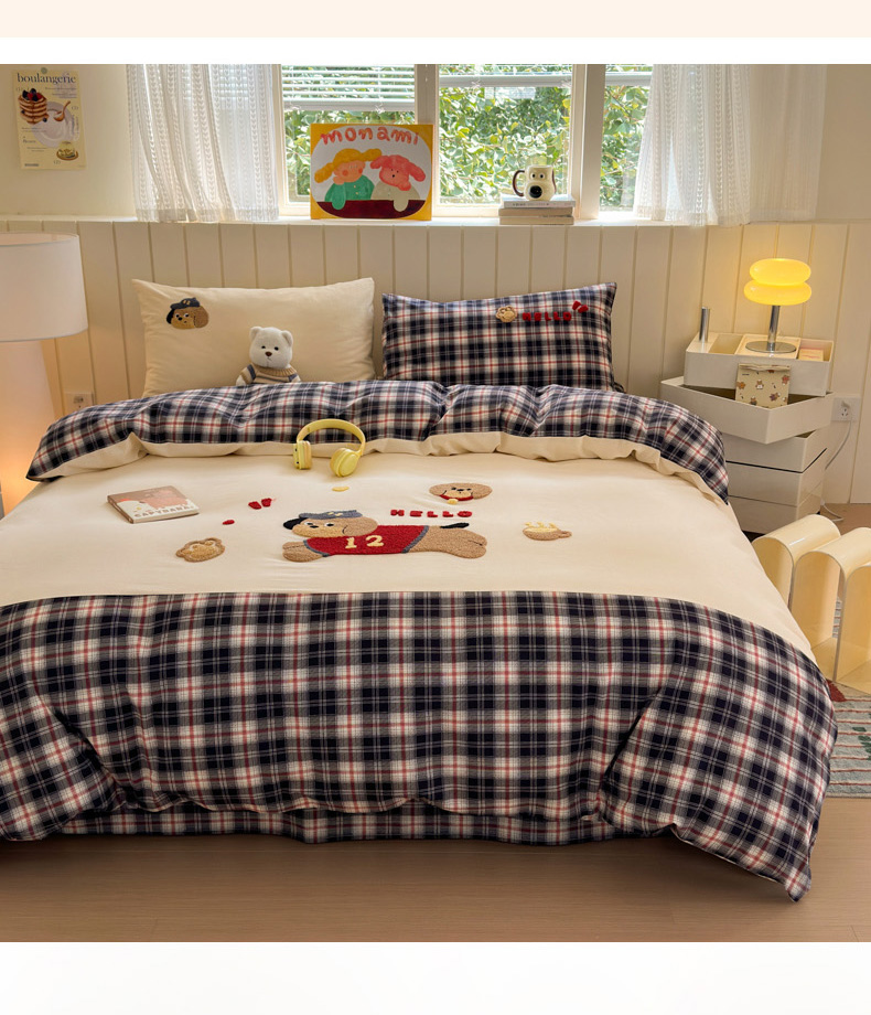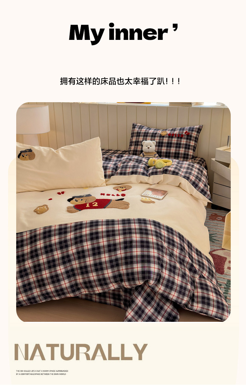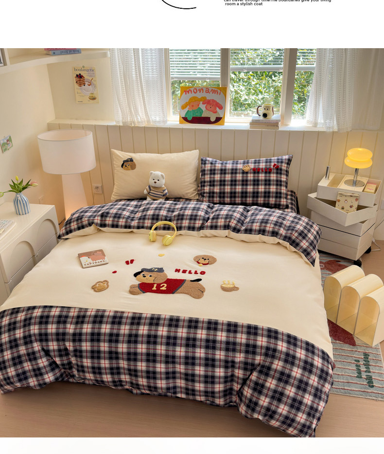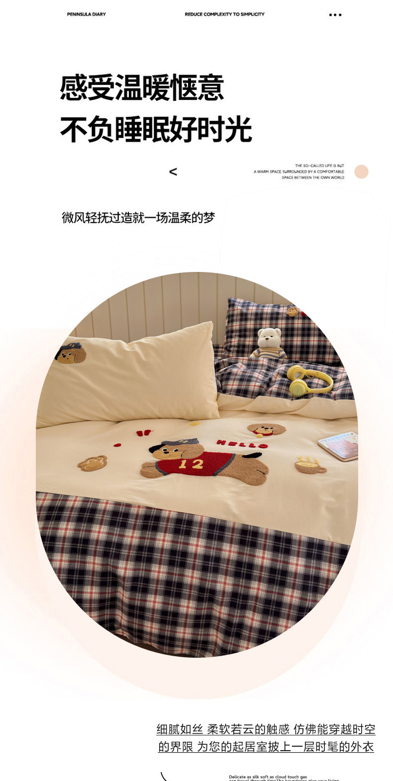 当前位置: 91家纺网 > 商品网购 > 床品套件 > 四件套 > 毛巾绣四件套 > 如意朵 2025新款全棉磨毛卡通毛巾绣四件套(专版花型)-场景二 运动小狗