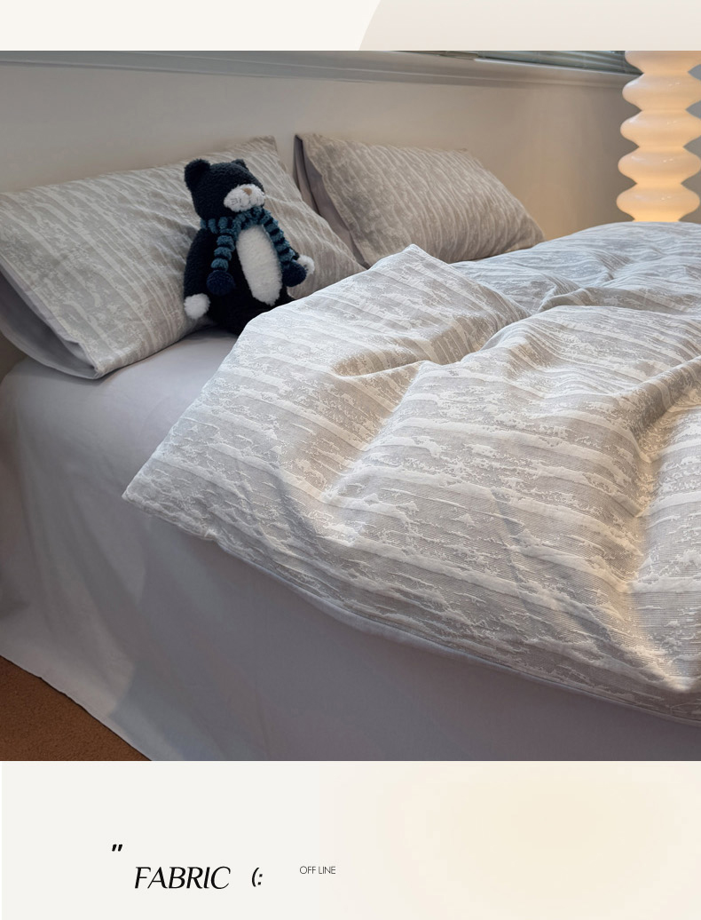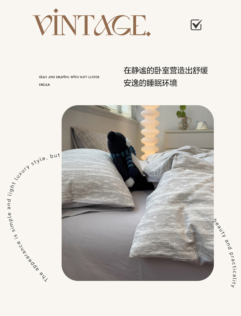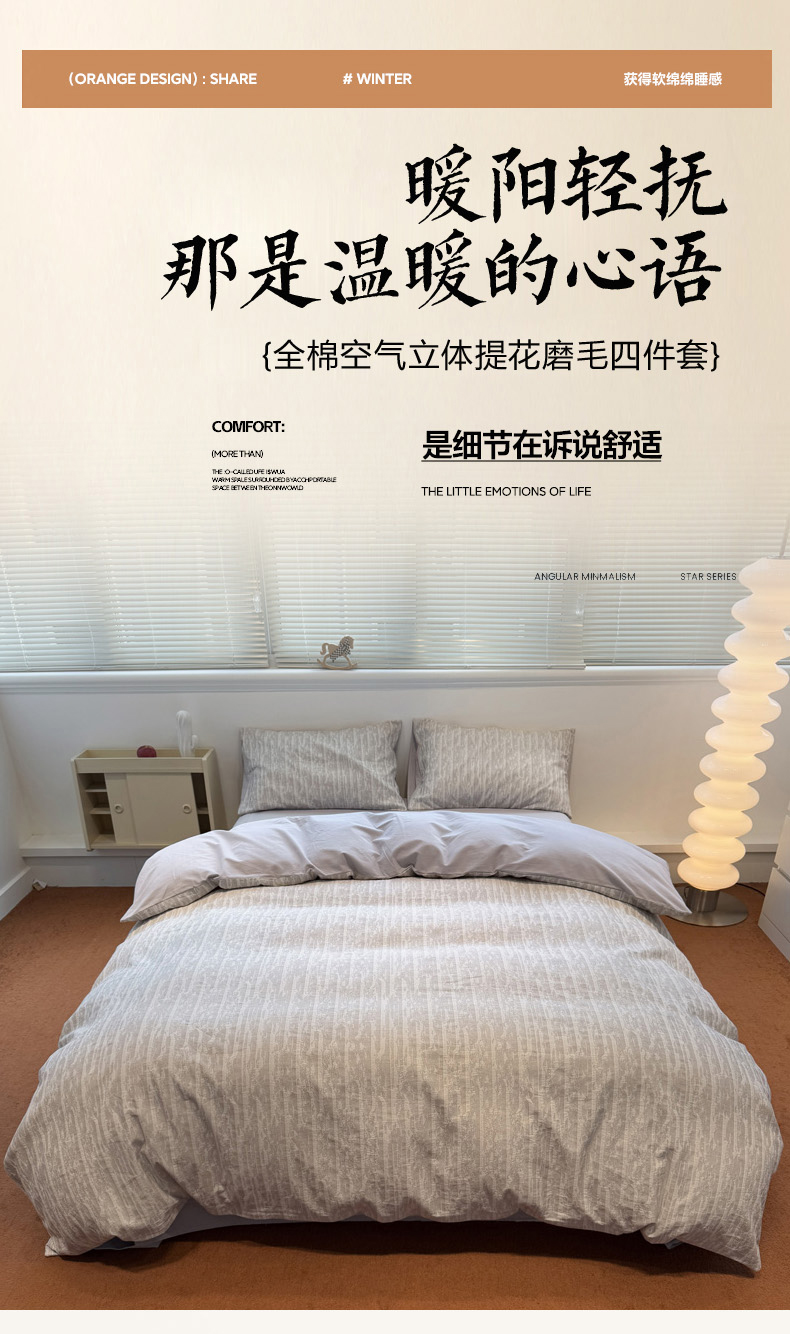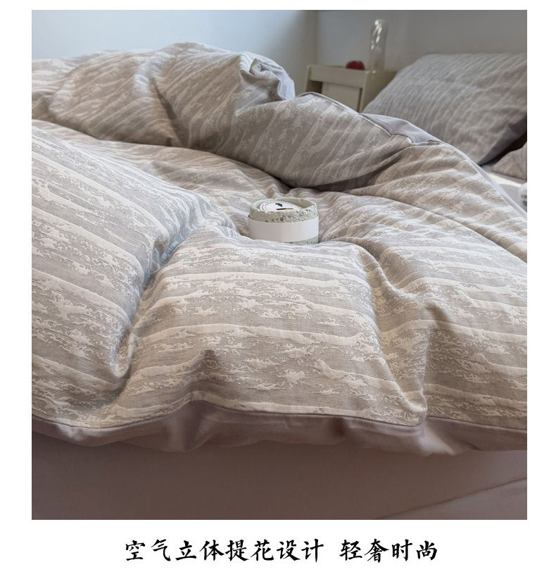 当前位置: 91家纺网 > 商品网购 > 床品套件 > 四件套 > 普通磨毛四件套 > 慕尚家纺 2025新款全棉空气立体提花磨毛四件套 律动-浅灰