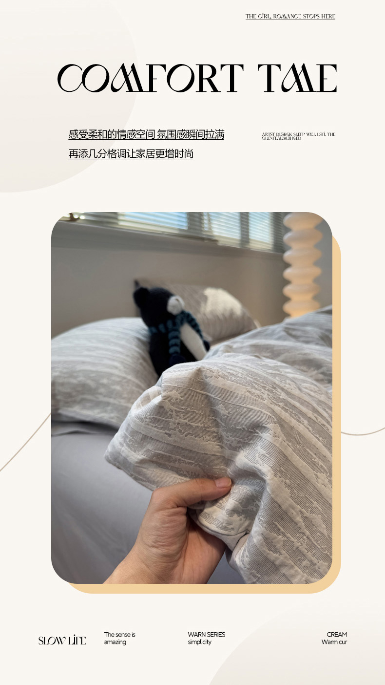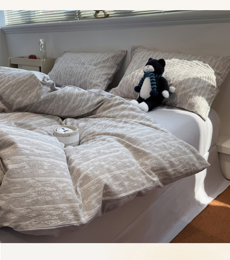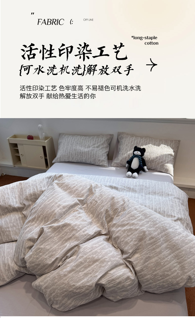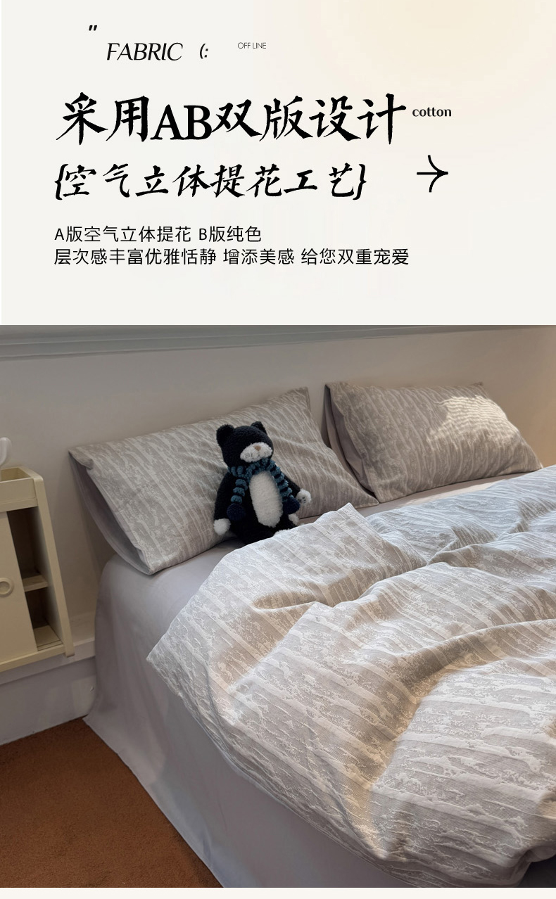 当前位置: 91家纺网 > 商品网购 > 床品套件 > 四件套 > 普通磨毛四件套 > 慕尚家纺 2025新款全棉空气立体提花磨毛四件套 律动-浅灰
