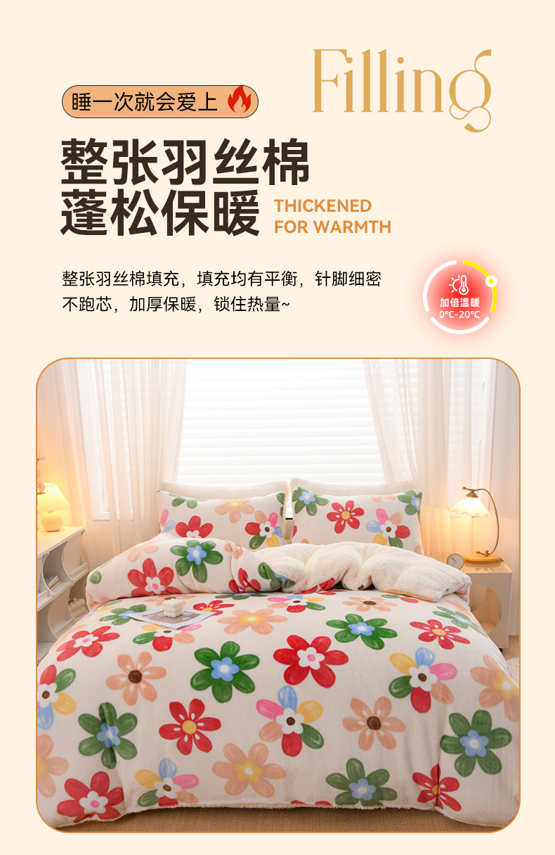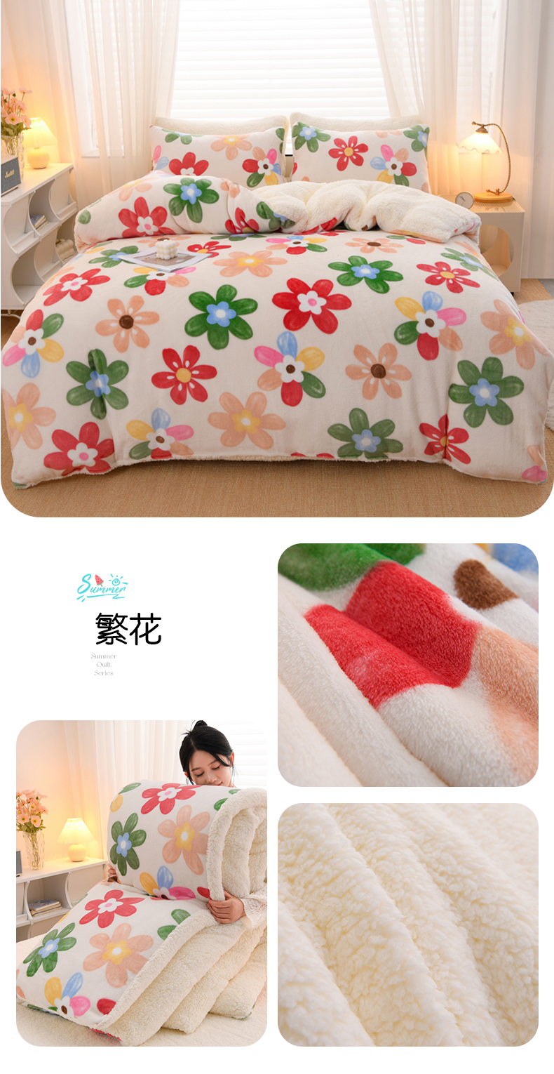 商品名称:圣楚家纺 2025秋冬新款亲肤舒适暖心羊羔绒牛奶绒AB面冬被被子被芯 伊人