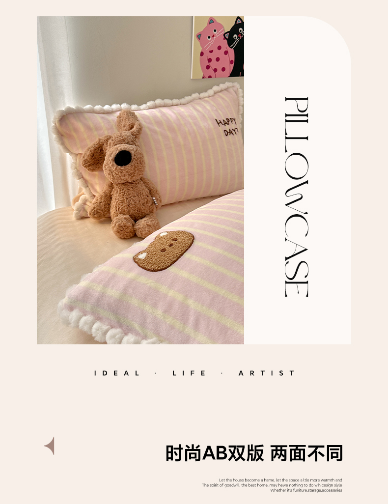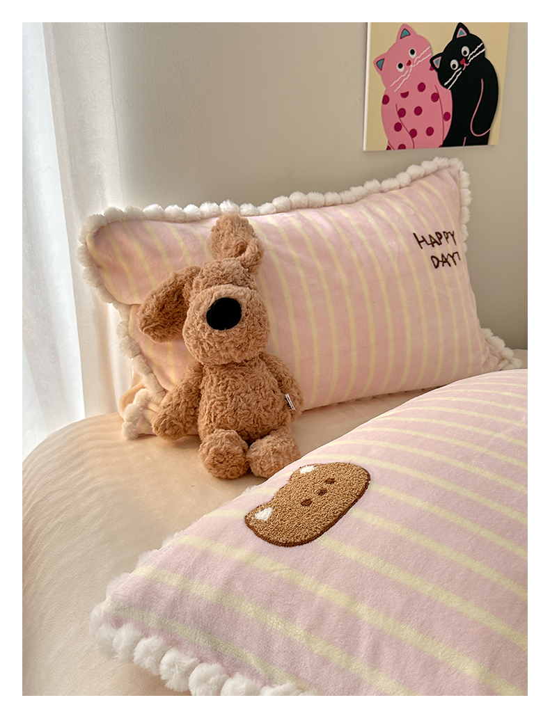 艾咪-Amy ntmy 2025新款可爱毛巾绣毛球款牛奶绒四件套-蛋糕猫咪 蛋糕猫咪-粉