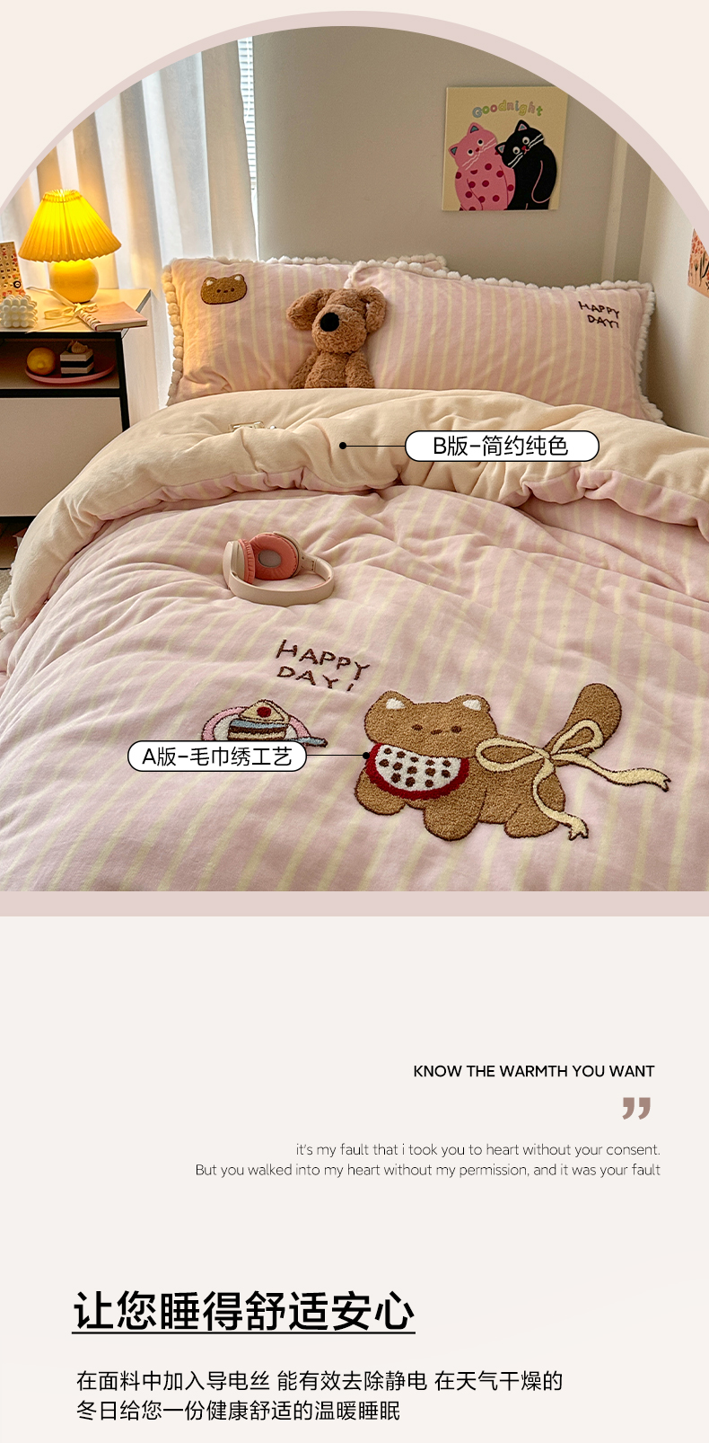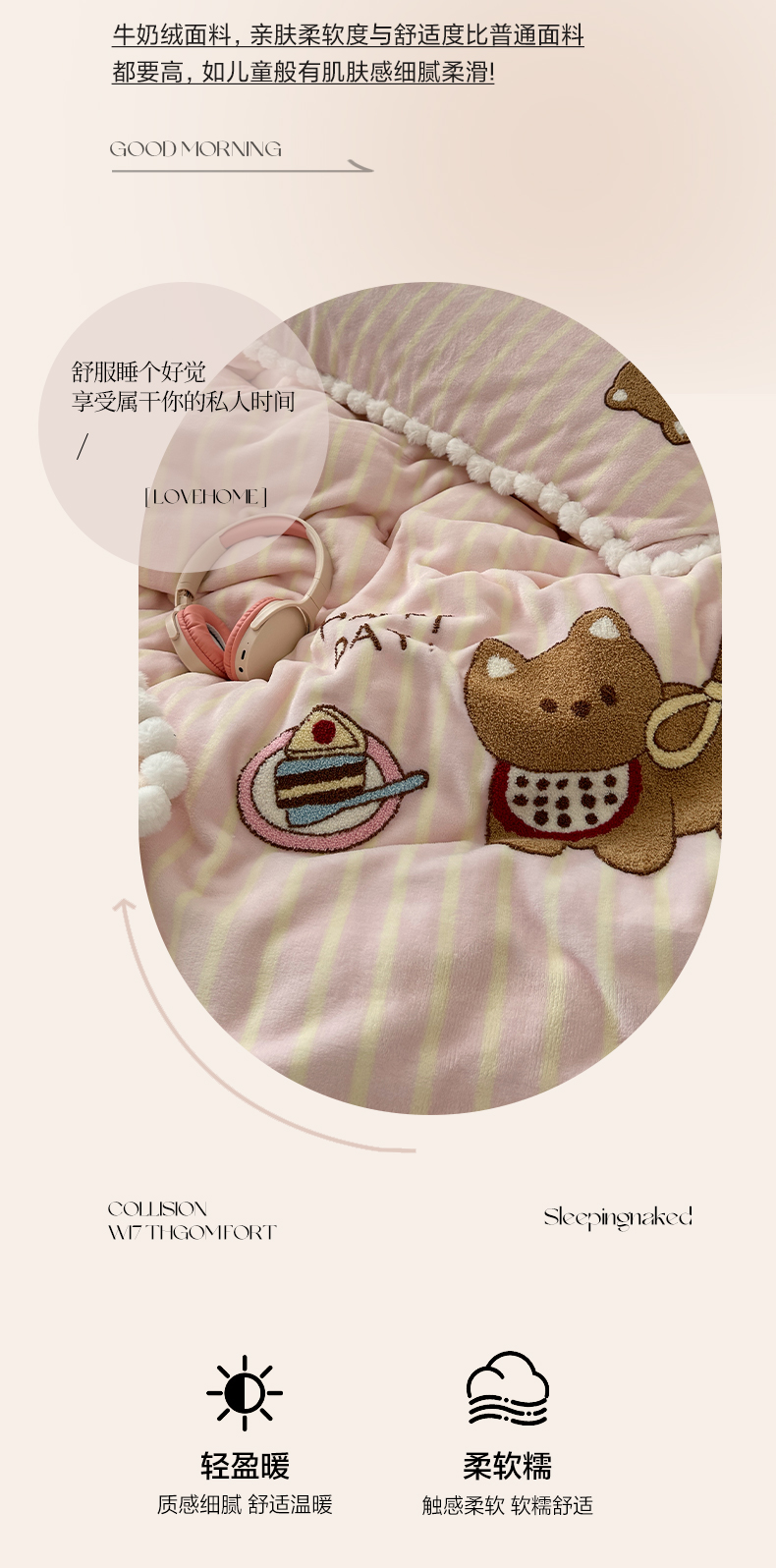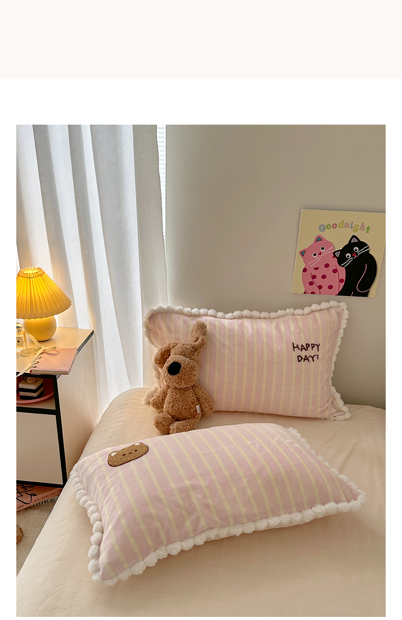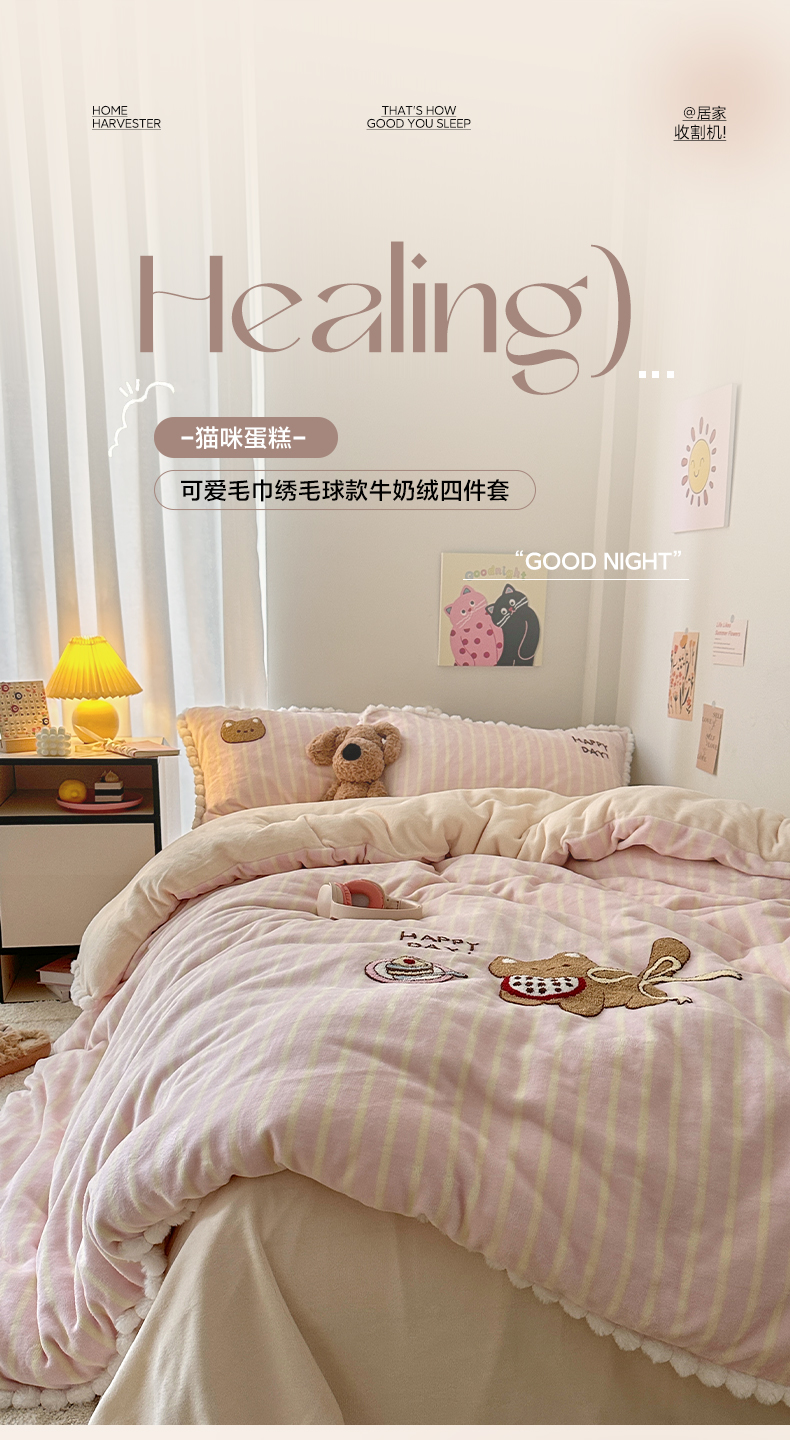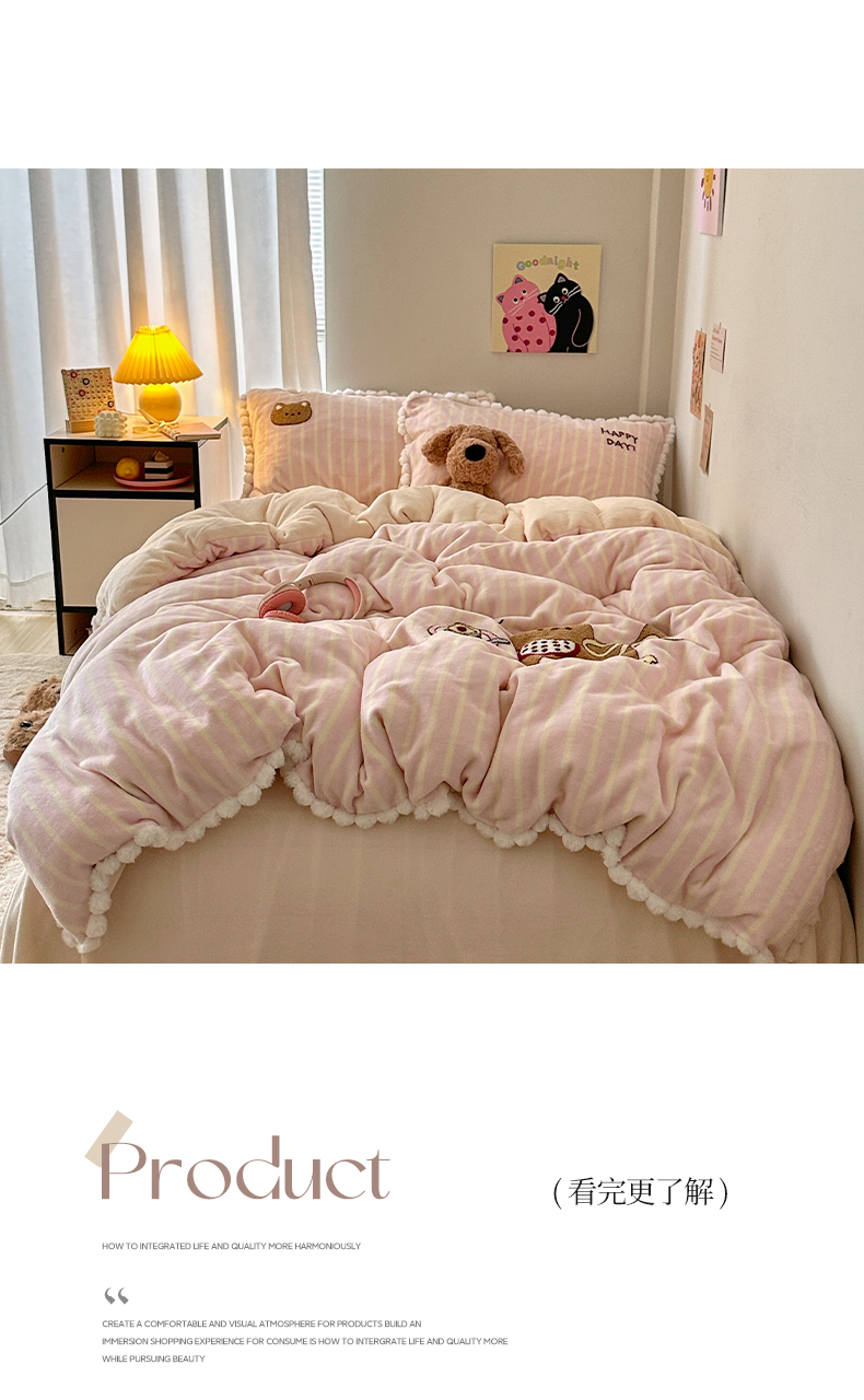 商品名称:艾咪-Amy ntmy 2025新款可爱毛巾绣毛球款牛奶绒四件套-蛋糕猫咪 蛋糕猫咪-粉