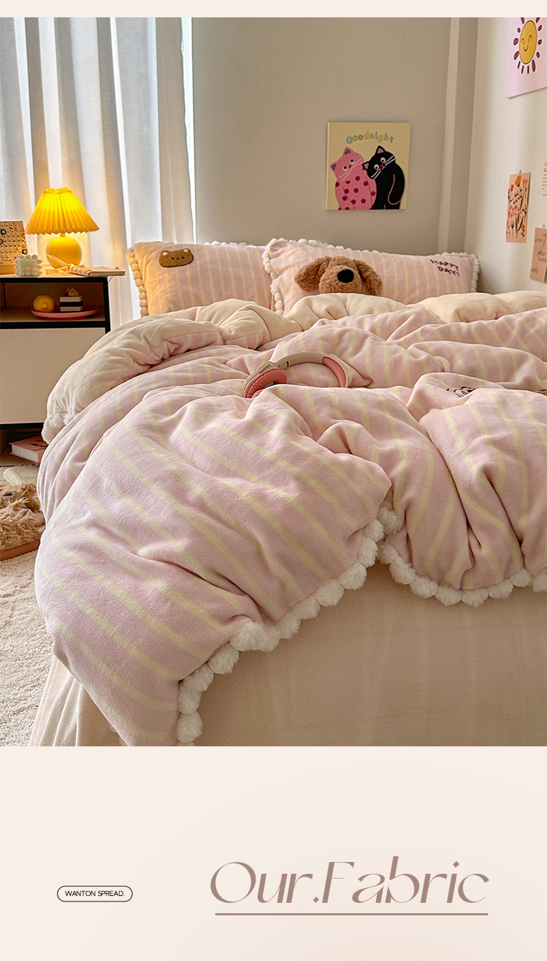 (总)艾咪-Amy ntmy 2025新款治愈系条纹牛奶绒四件套,青柠奶绿,粉奈焦糖,粉奈新粉,拿铁焦糖,奶咖焦糖,青柠焦糖,香草焦糖