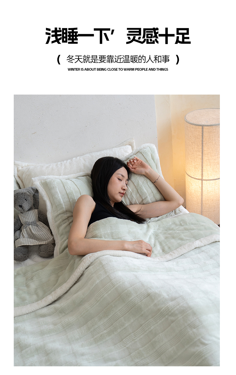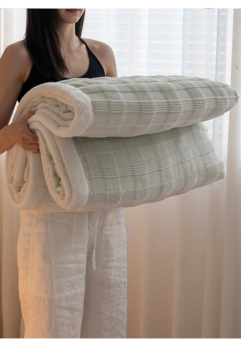 (总)宜派家纺 2025新款A类婴儿绒北极绒羽丝棉三层夹棉盖毯,半糖粉【双面绒夹棉】,青提绿【双面绒夹棉】,薄雾绿【双面绒夹棉】,水墨灰【双面绒夹棉】,拿铁咖【双面绒夹棉】,晴空蓝【双面绒夹棉】,星云粉【双面绒夹棉】,丁香紫【双面绒夹棉]