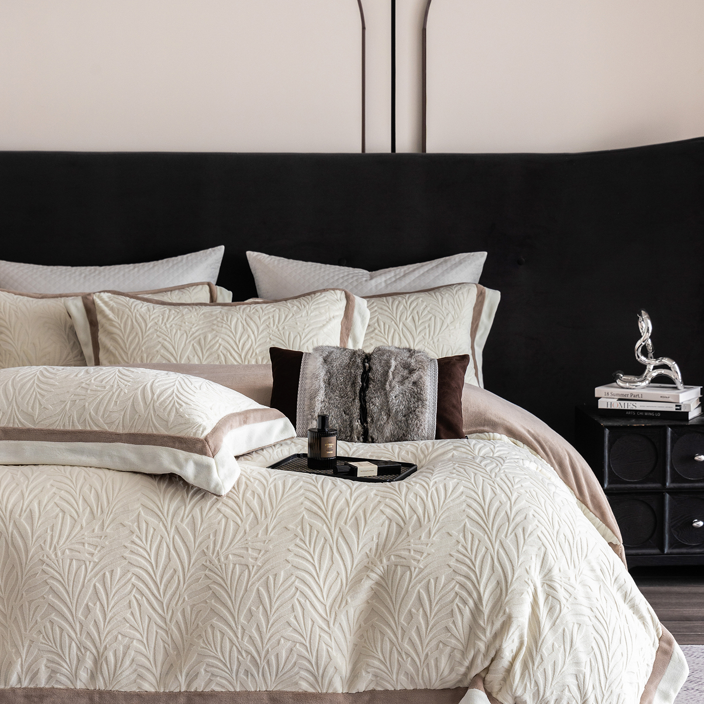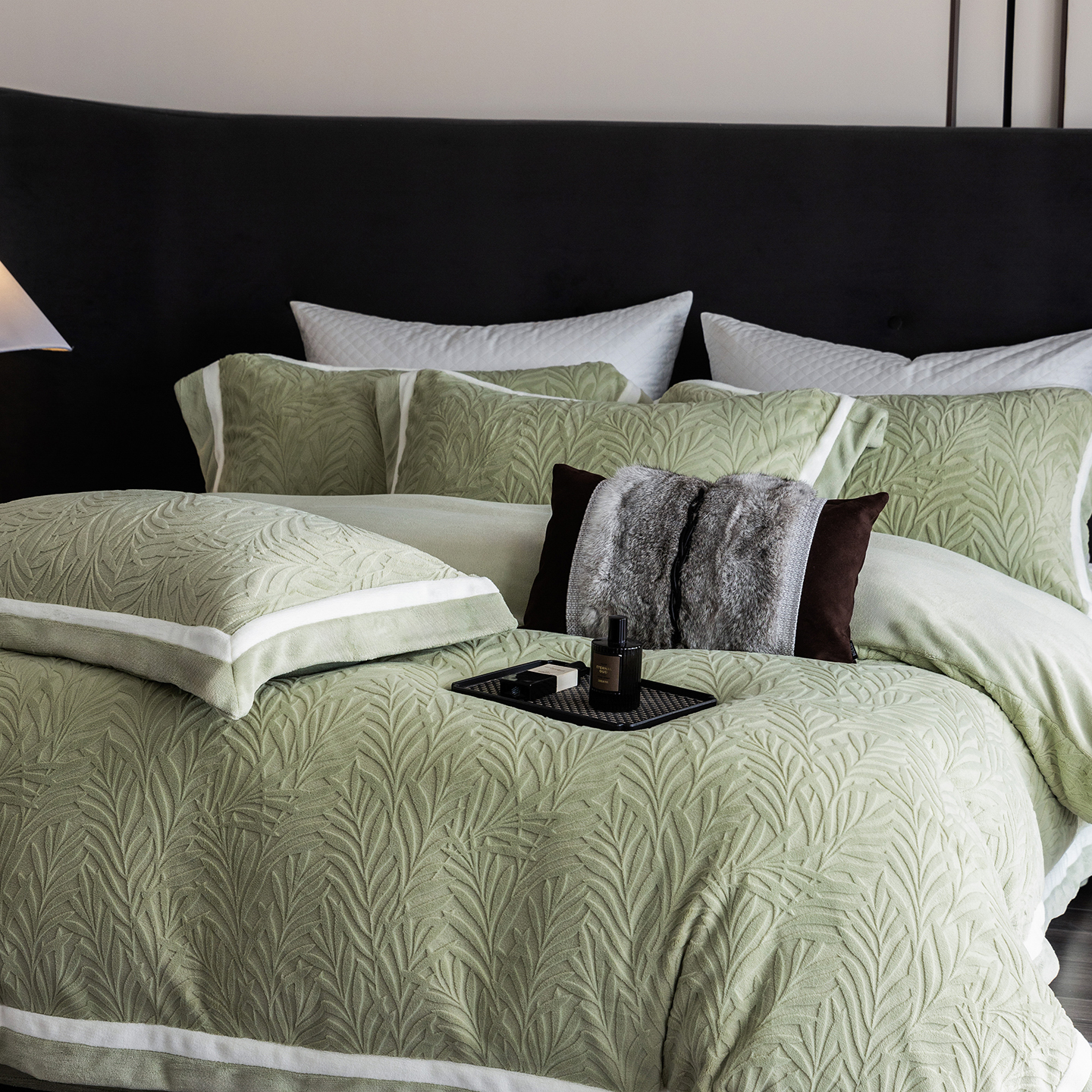 商品名称:蓝梦 2025新款亲肤舒适牛奶绒四件套-榈叶系列 榈叶-豆蔻粉
