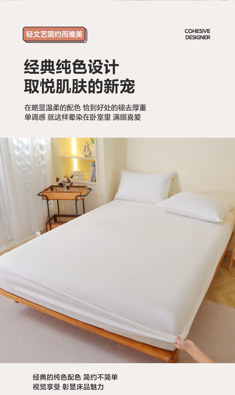 • 91家纺网 家纺一手货源 找家纺 晶缦 2025新款100%纯棉13376纯色喷气全棉磨毛单床笠 暖芸馨-本白色