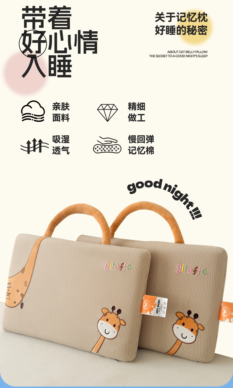 当前位置: 91家纺网 > 商品网购 > 枕头/枕芯/保健枕/颈椎枕 > 枕头枕芯 > 麦肯锡 2025新款长颈鹿面包儿童记忆枕 枕头枕芯 咖色/对