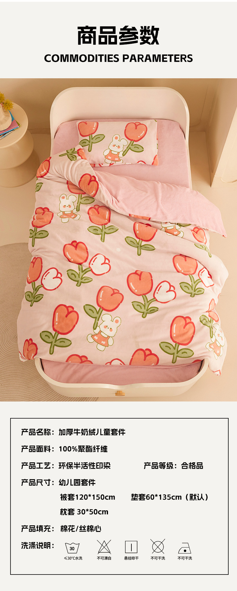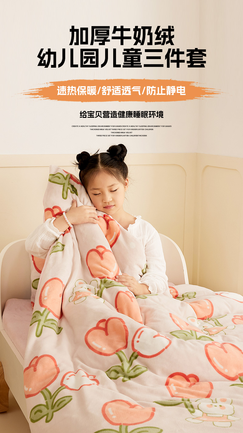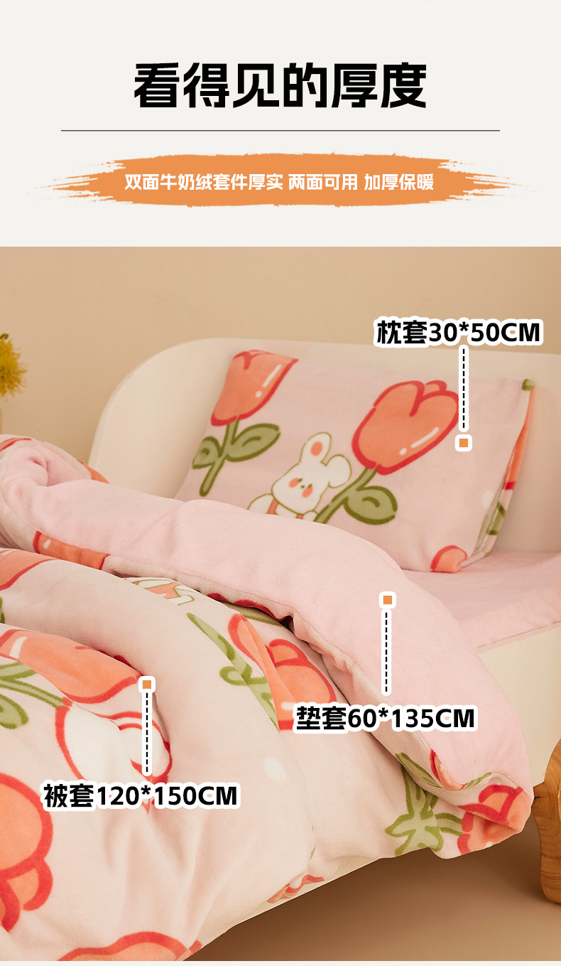 当前位置: 91家纺网 > 商品网购 > 床品套件 > 三件套 > 嗨生活 2025新款加厚牛奶绒三件套儿童套件幼儿园三件套系列 花间小兔