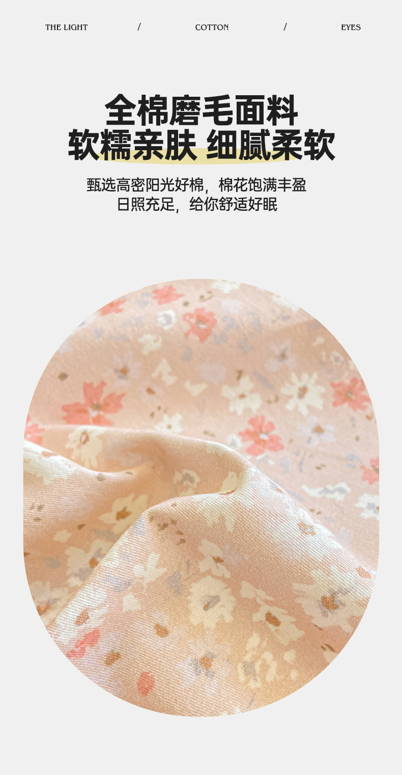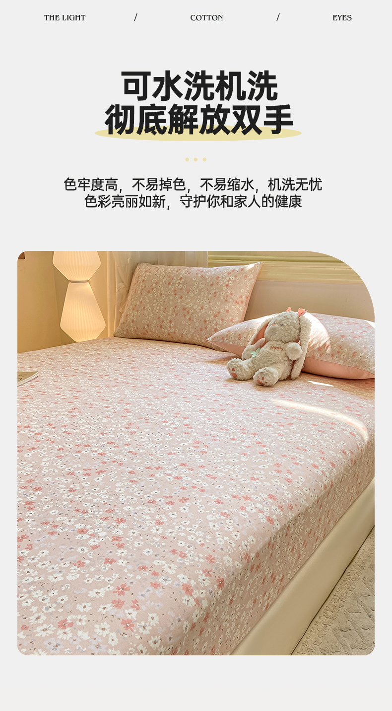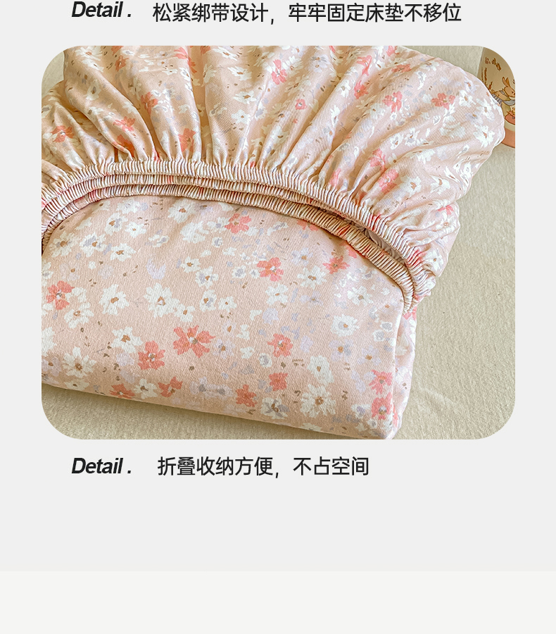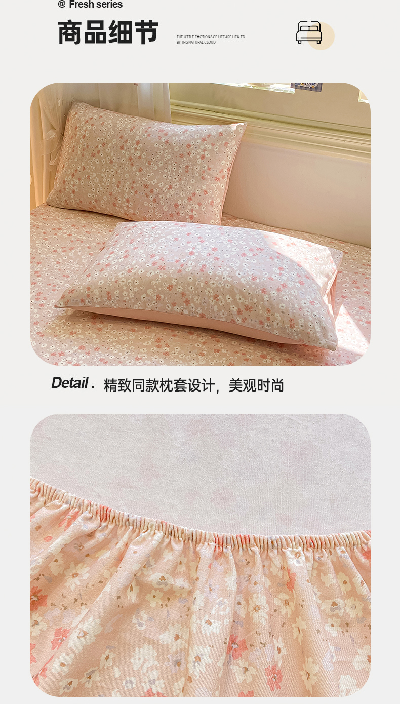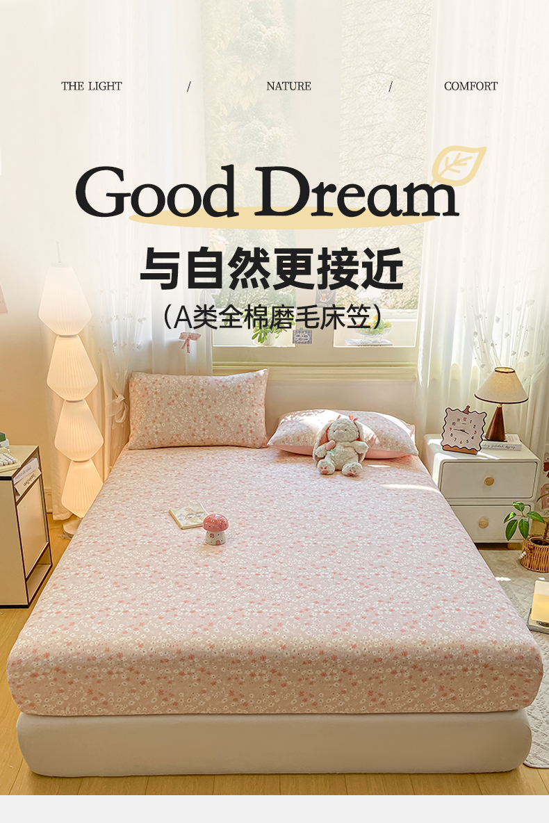 • 91家纺网 家纺一手货源 找家纺 灰鲸 2025新款A类全棉磨毛单品床笠 床笠单件 零落-粉