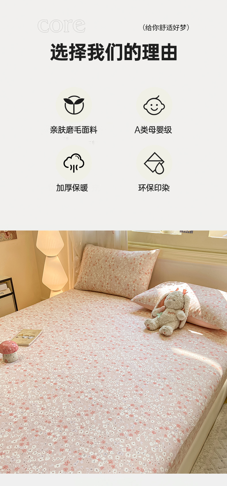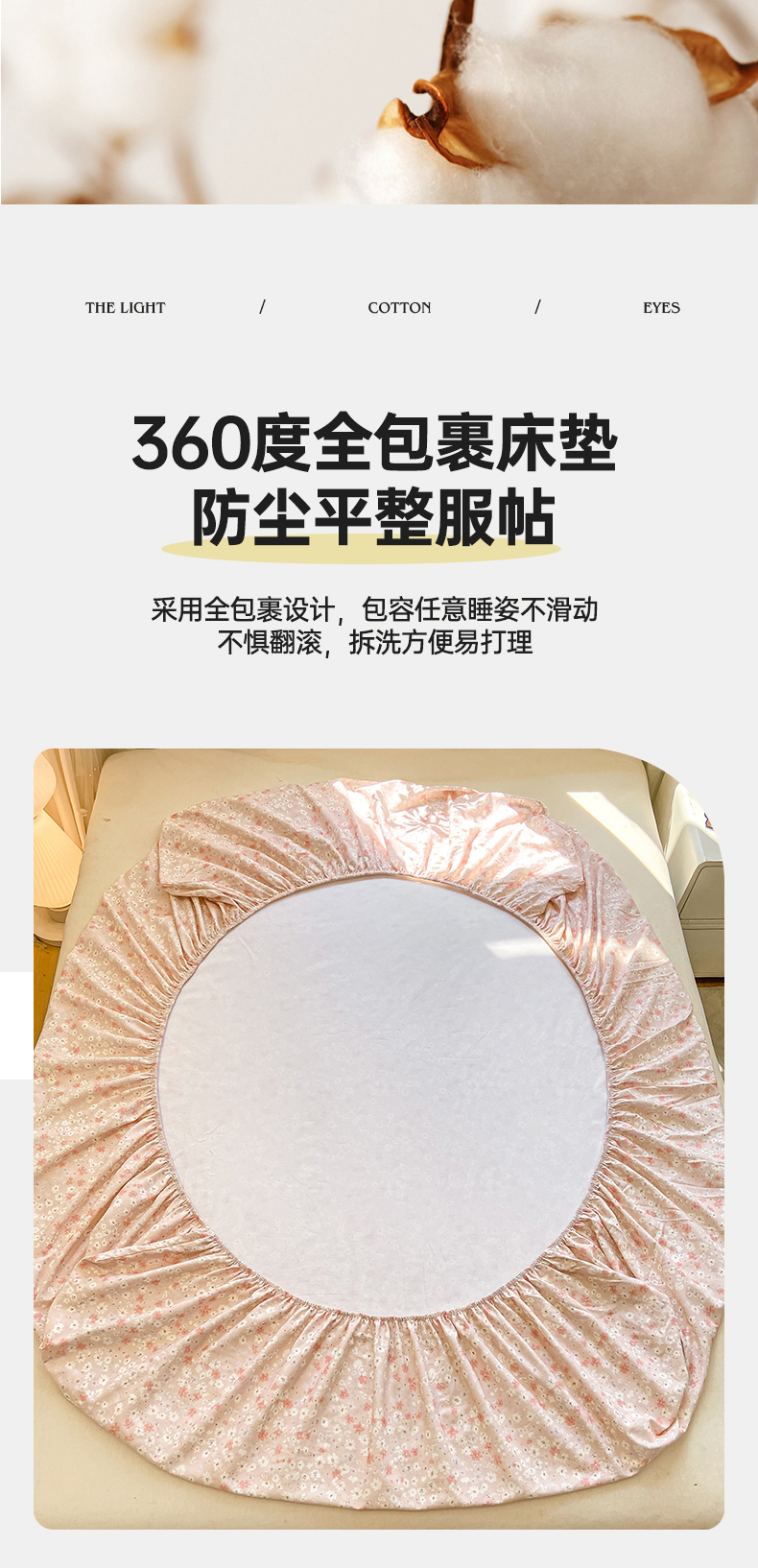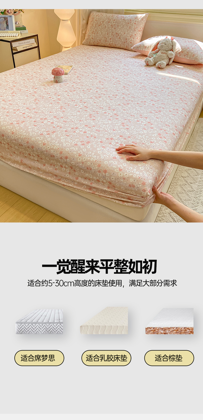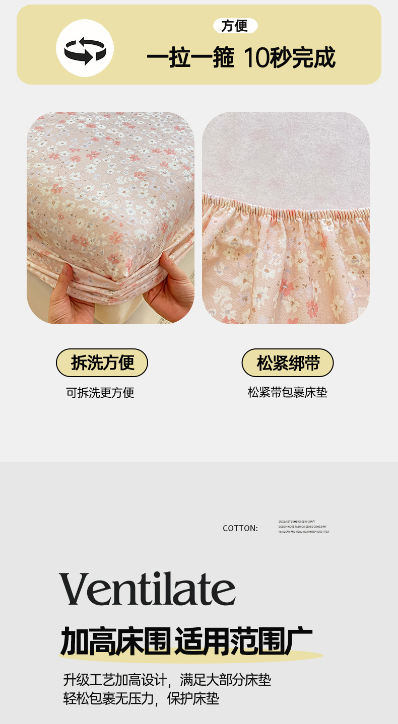 • 91家纺网 家纺一手货源 找家纺 灰鲸 2025新款A类全棉磨毛单品床笠 床笠单件 零落-粉