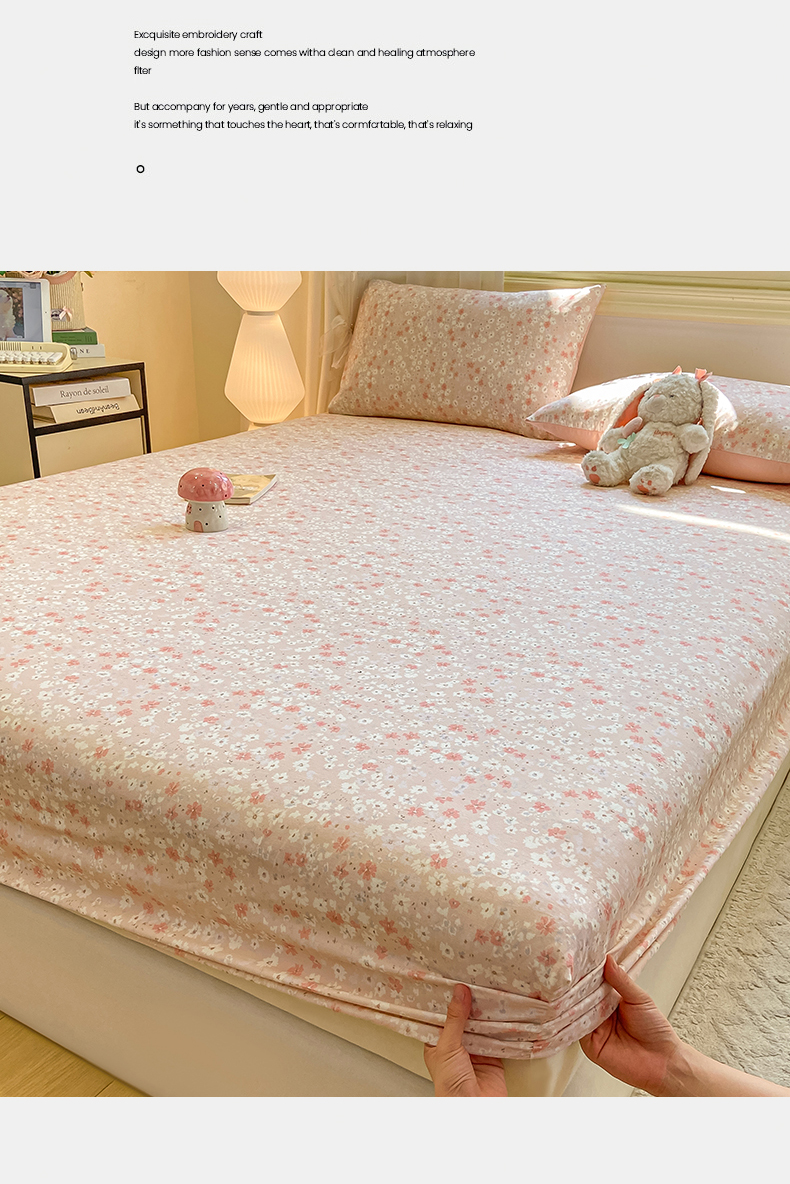 灰鲸 2025新款A类全棉磨毛单品床笠 床笠单件 零落-粉