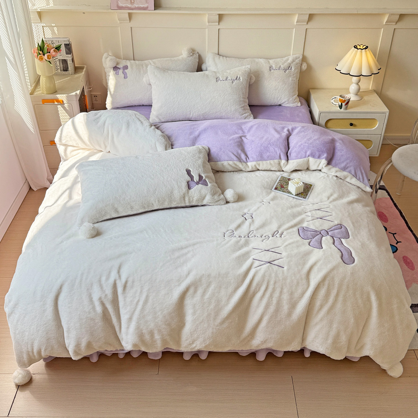 当前位置: 91家纺网 > 商品网购 > 床品套件 > 四件套 > 其它四件套 > 麦朵家居 2025新款毛球高克重兔毛贴布绣牛奶绒四件套高克重宝宝绒床裙款四件套 兔毛-领结黄
