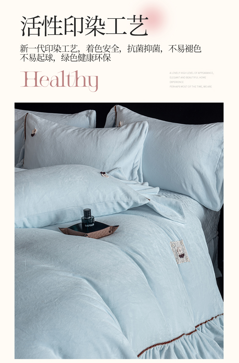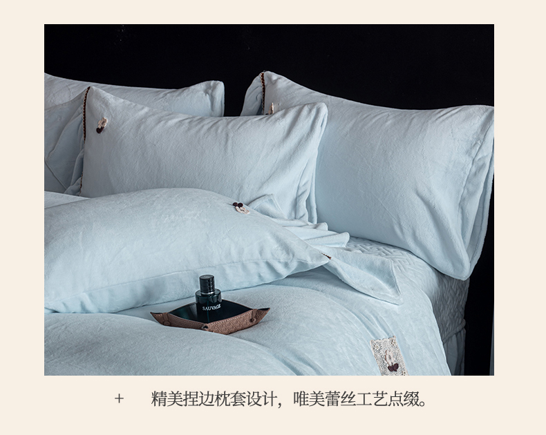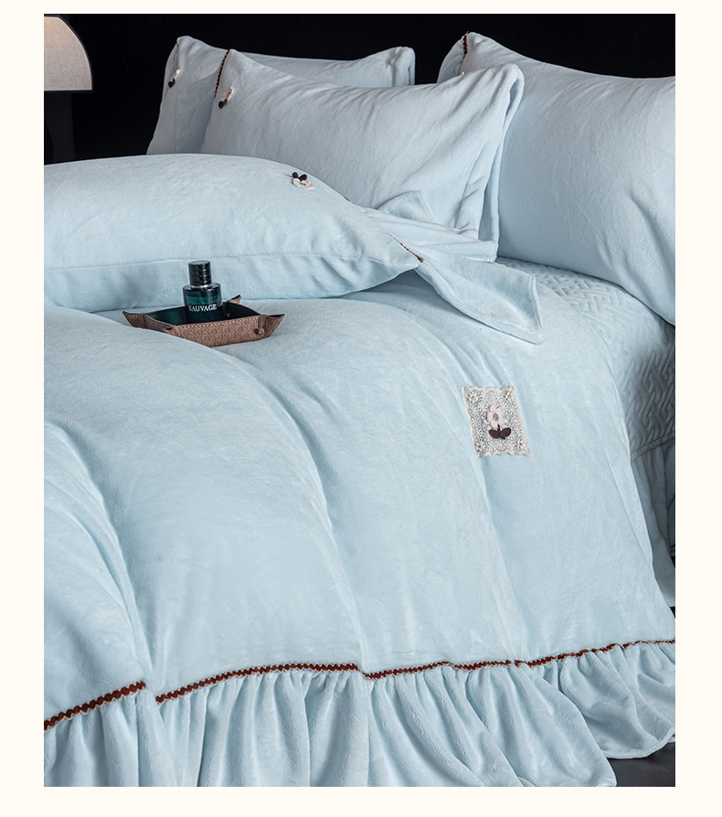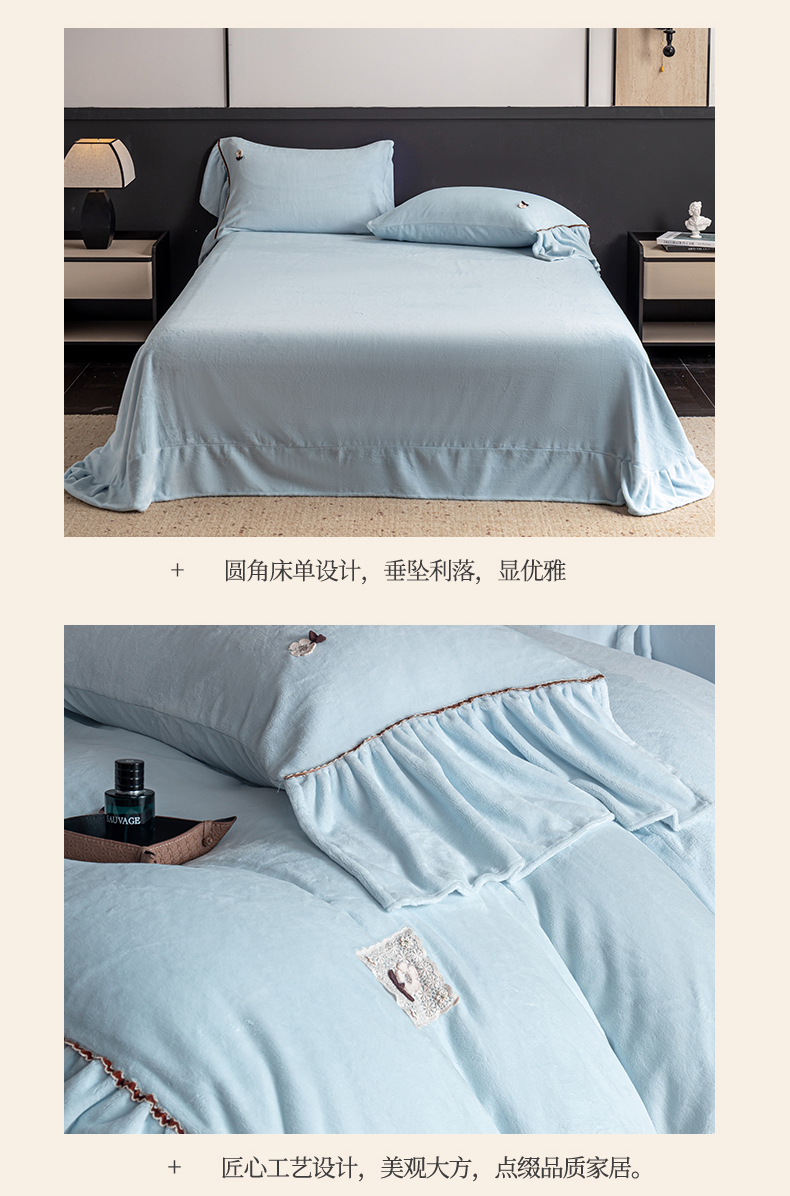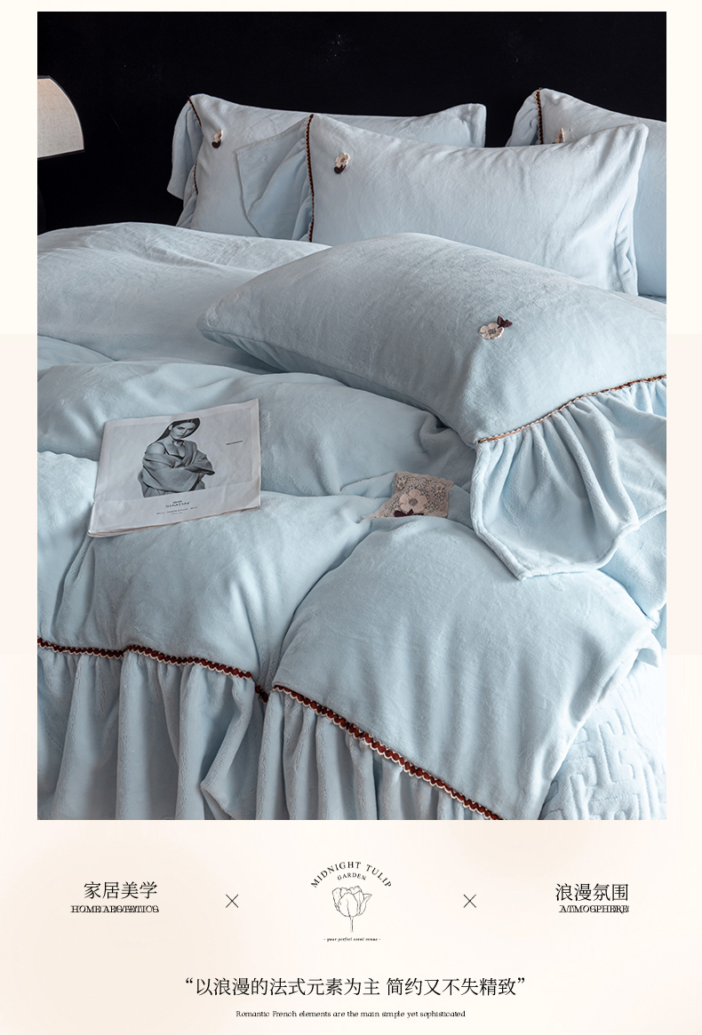 商品名称:罗优家纺 2025新款柔暖皱幔款暖绒四件套 浅蓝