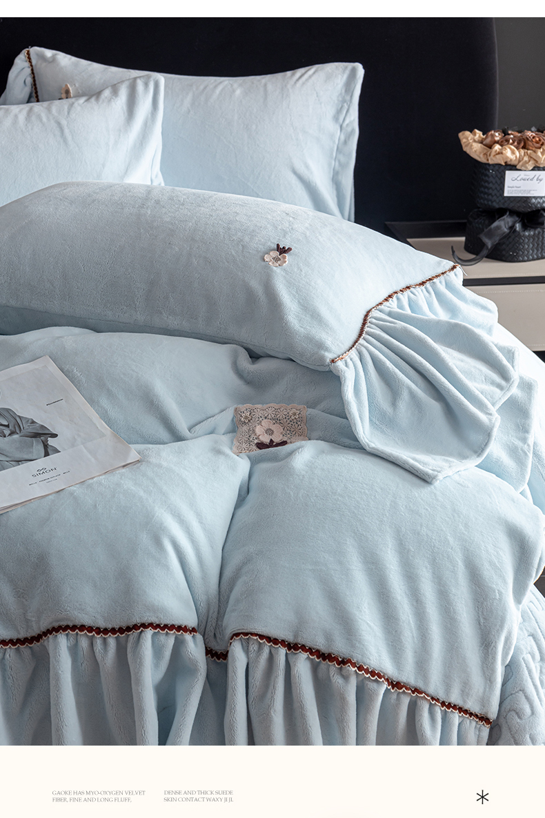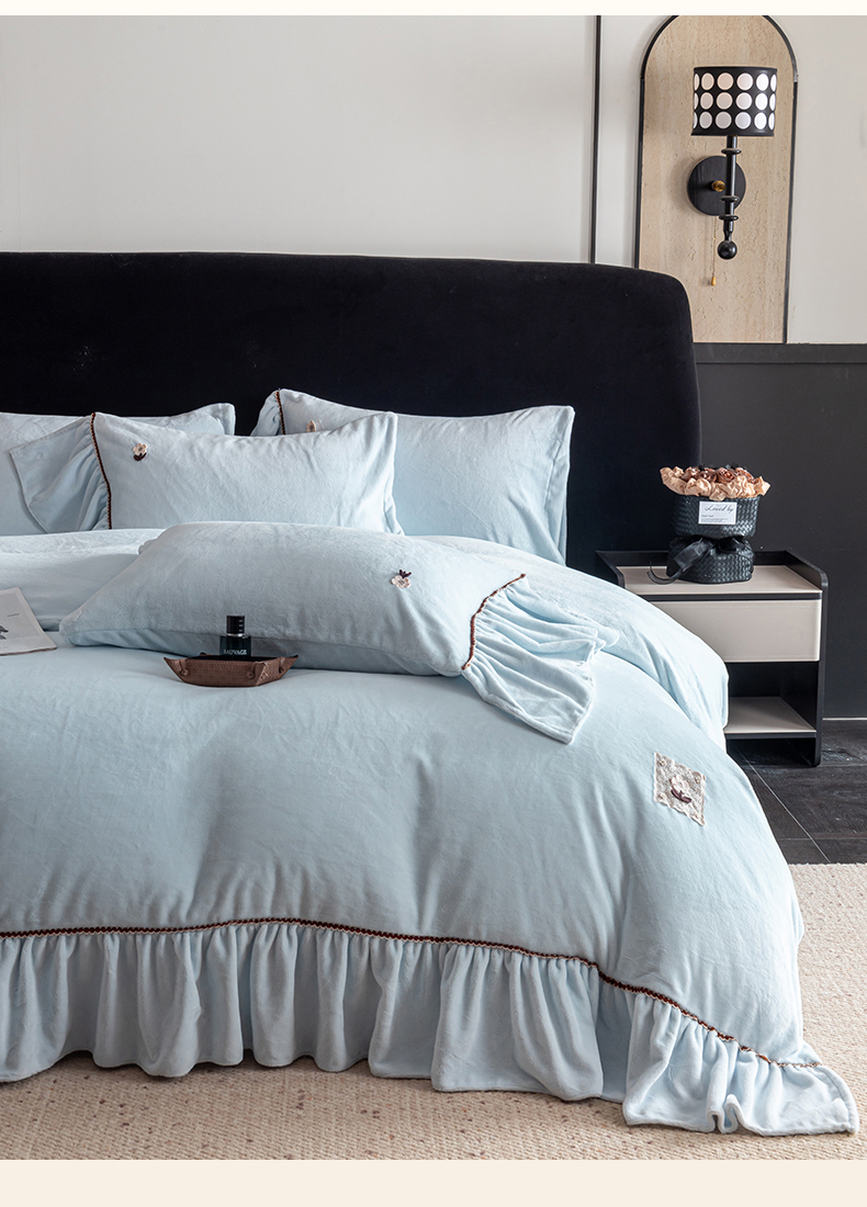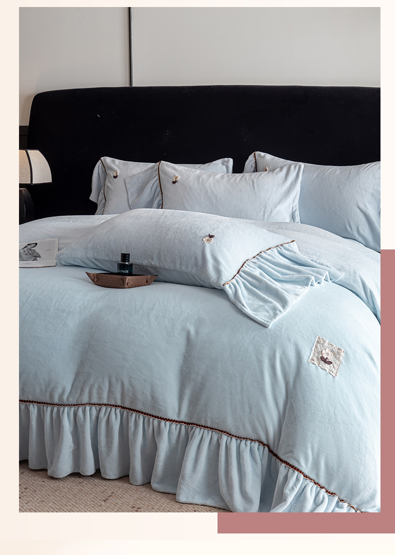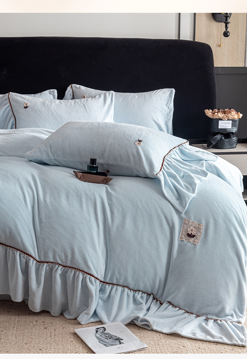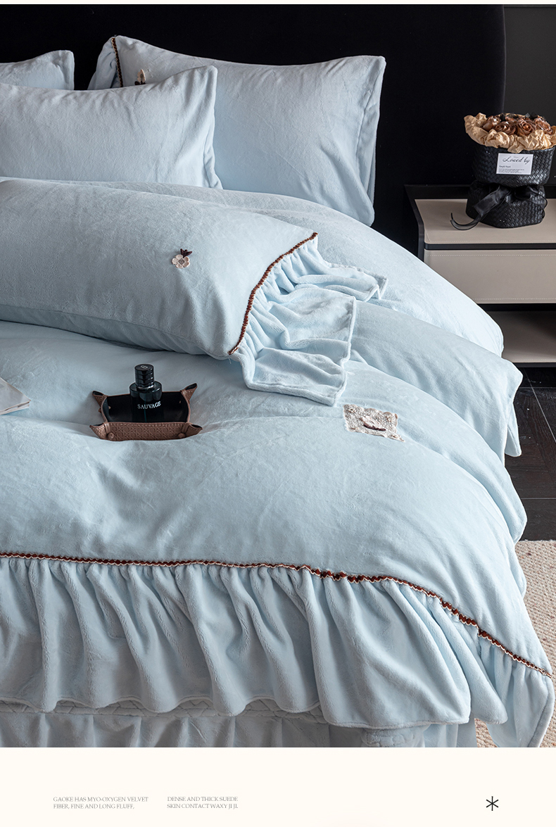 罗优家纺 2025新款柔暖皱幔款暖绒四件套 浅蓝