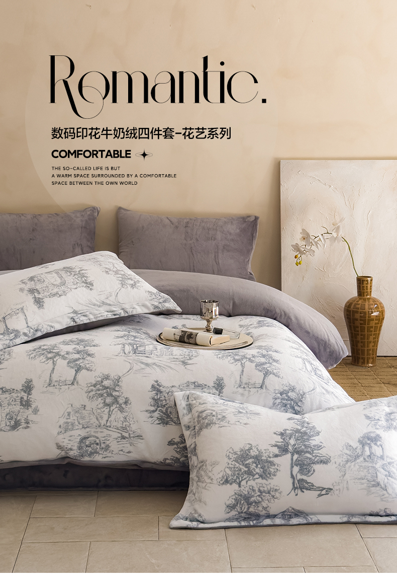 三味舒屋 2025新款奢暖数码印花牛奶绒四件套-场景图 西西里