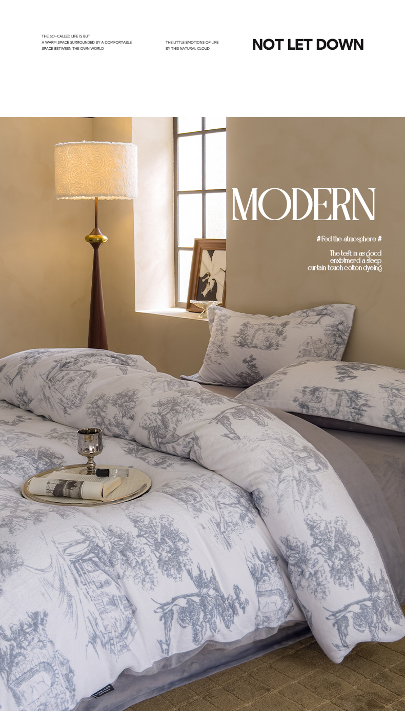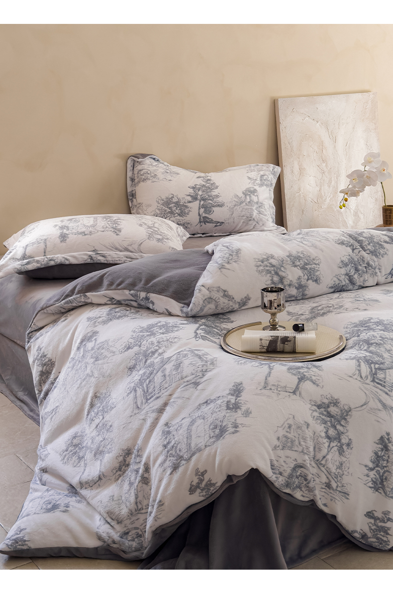 商品名称:三味舒屋 2025新款奢暖数码印花牛奶绒四件套-场景图 西西里