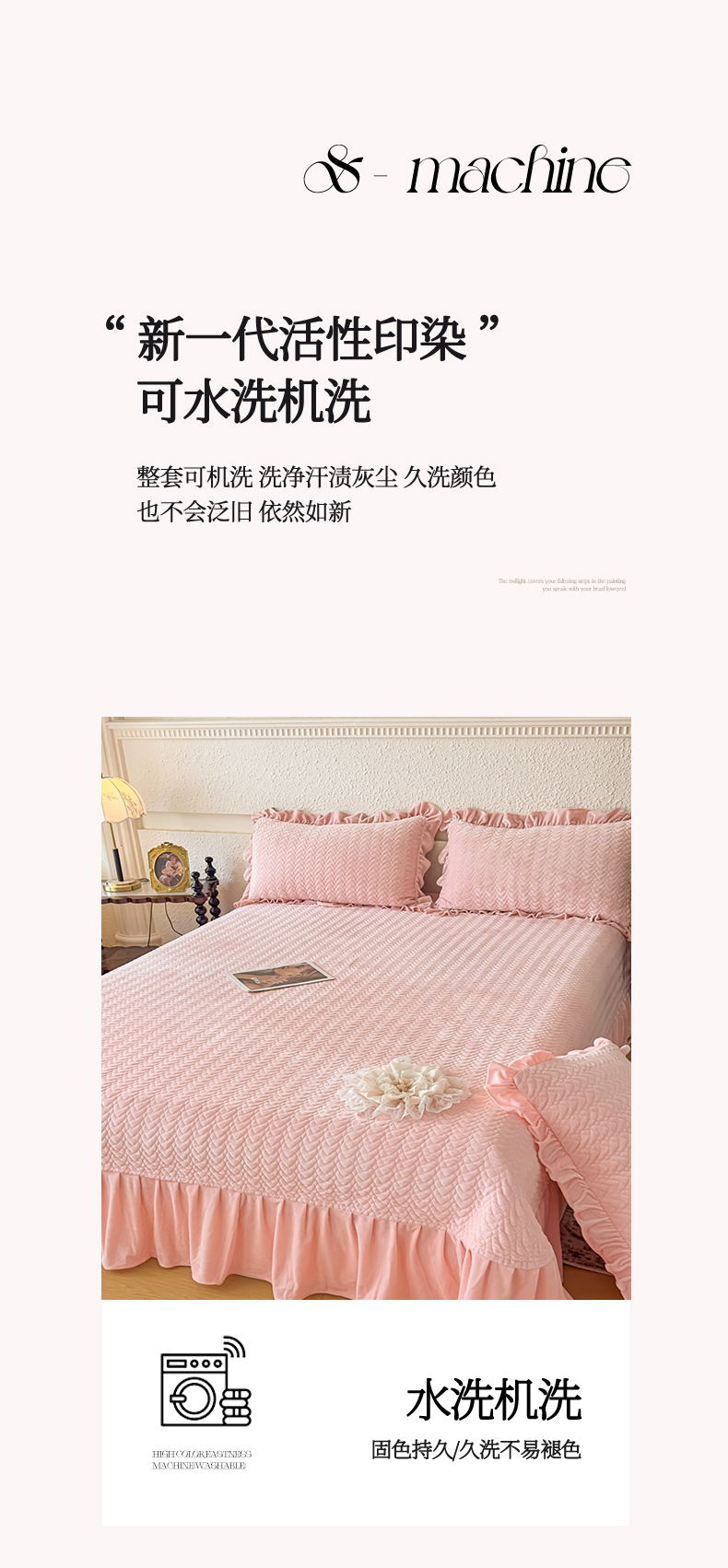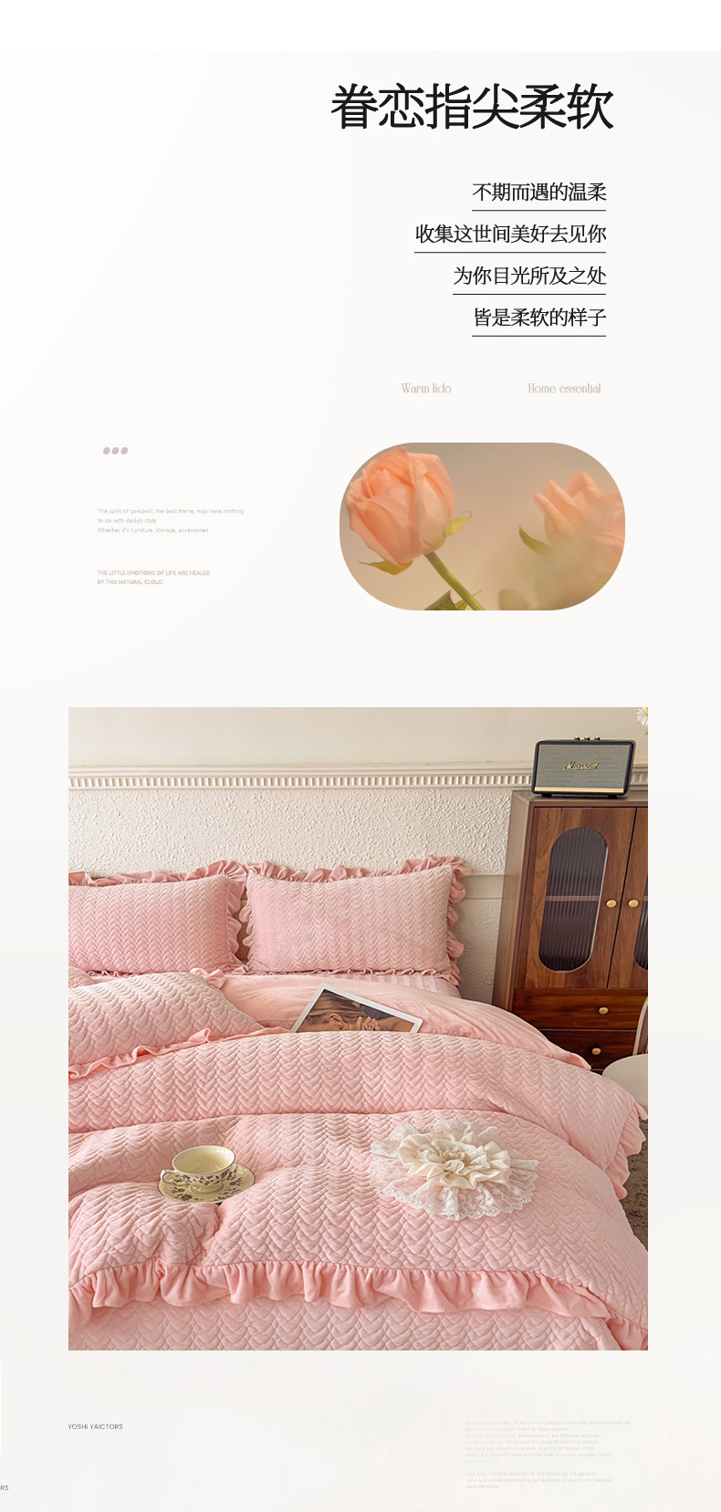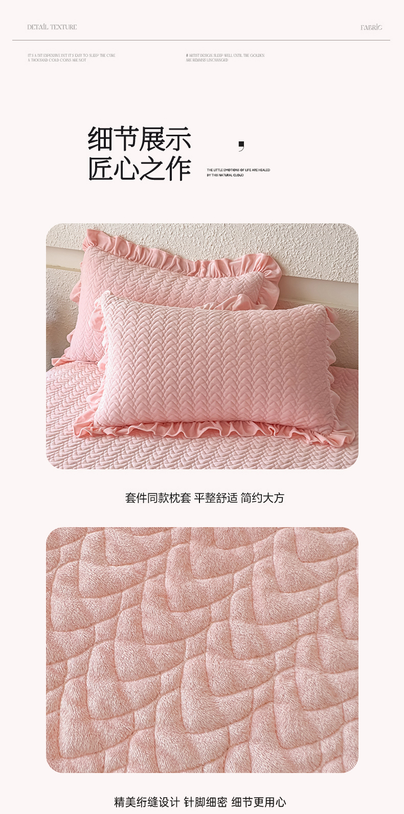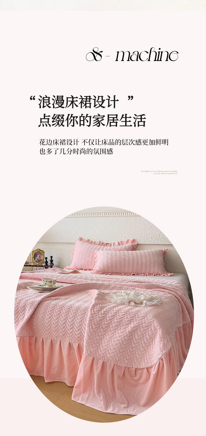 商品名称:乐嘉盈2025年新款纯色刺绣床裙款牛奶绒四件套-云栖 云栖-粉
