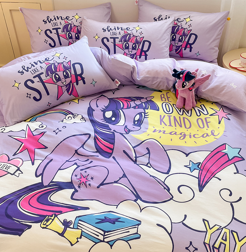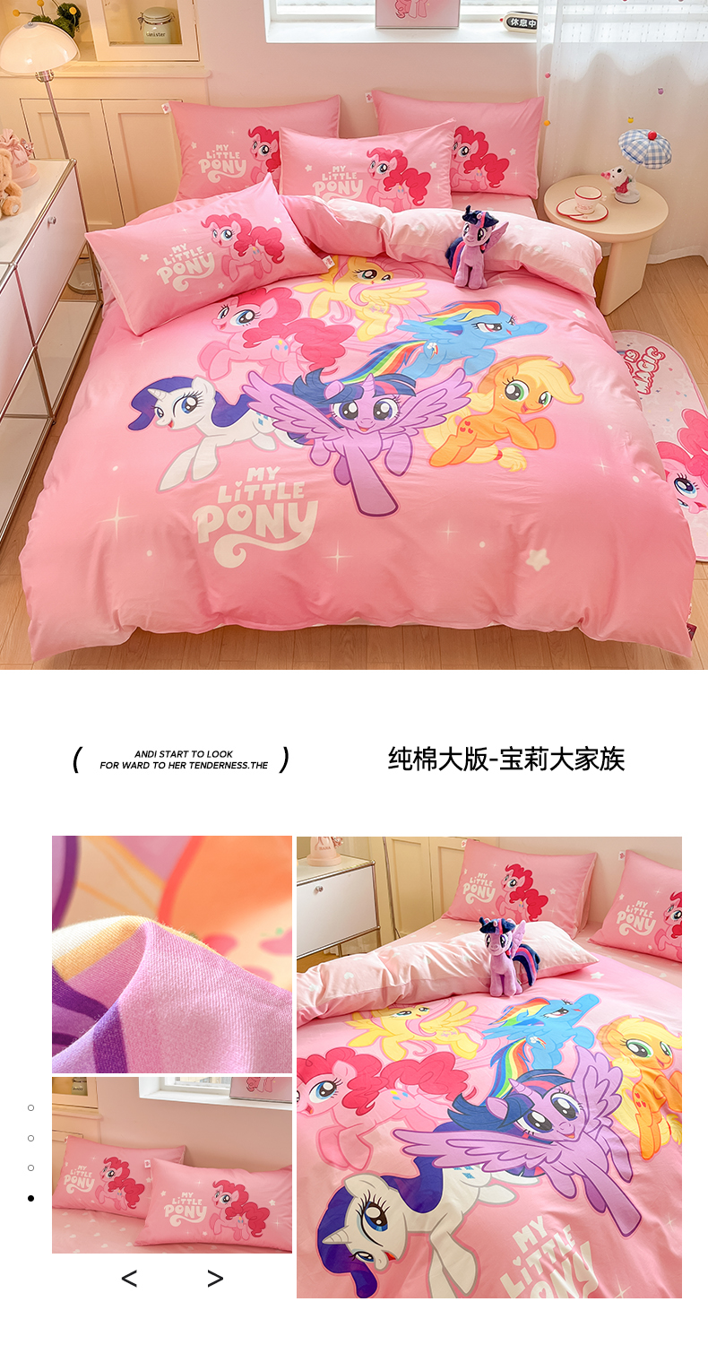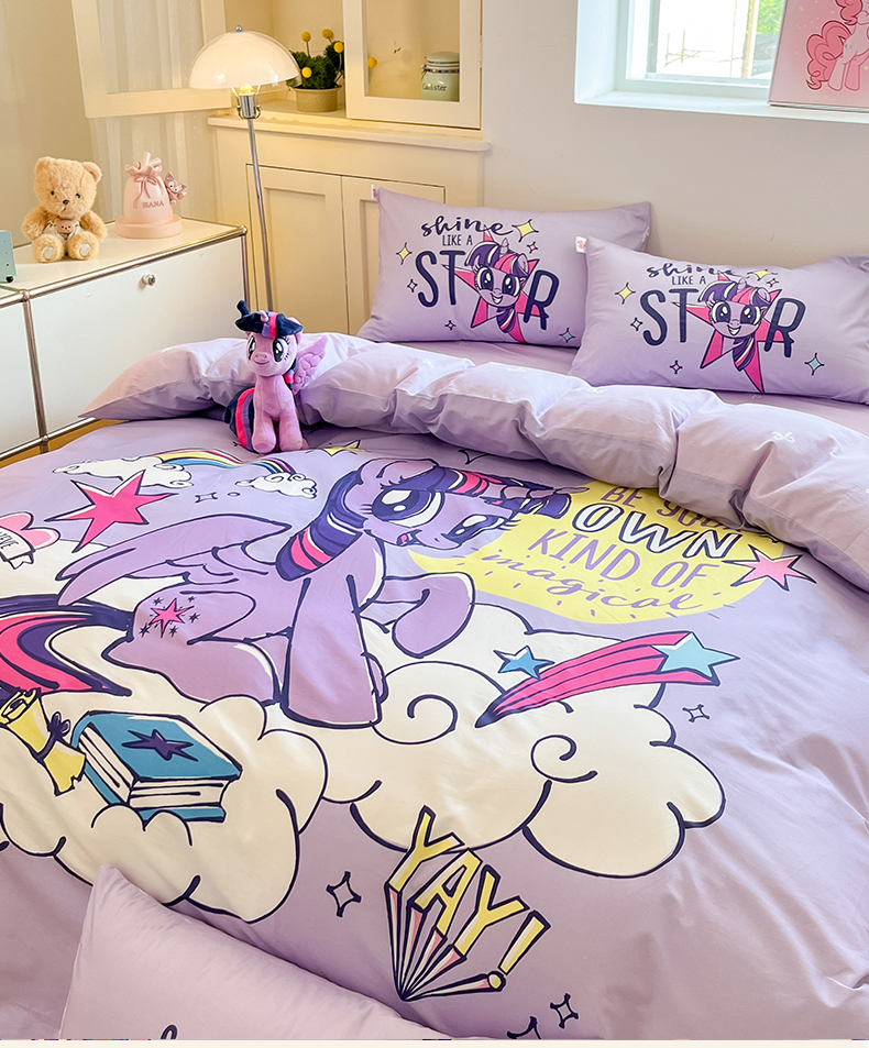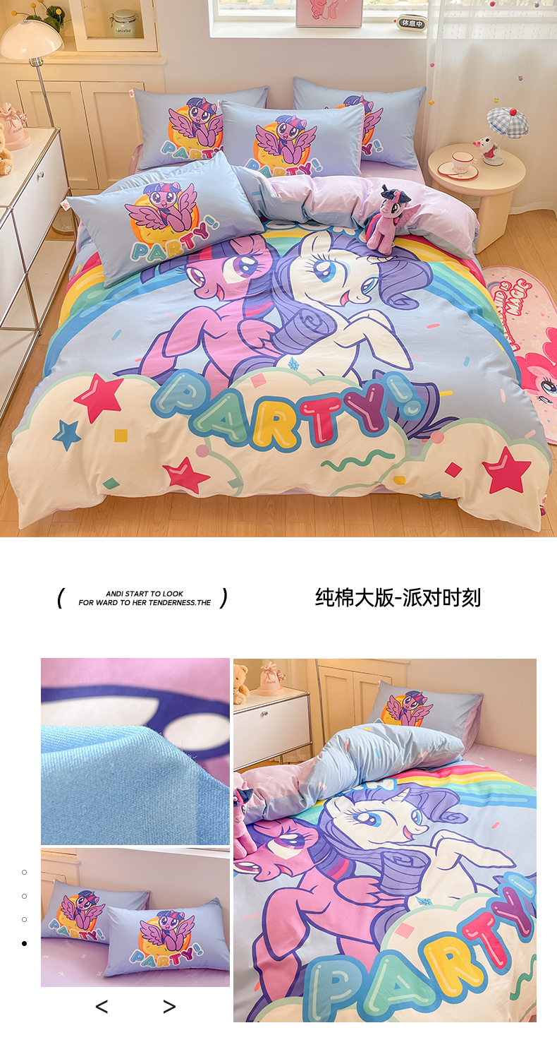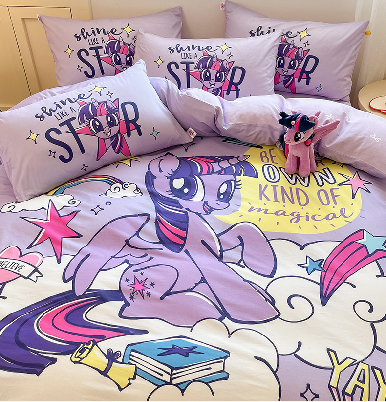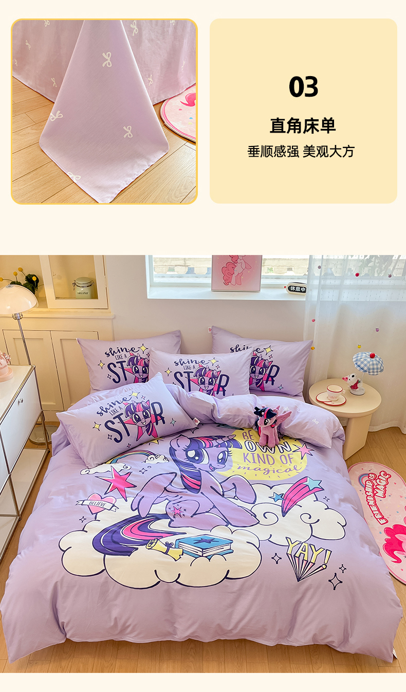当前位置: 91家纺网 > 商品网购 > 床品套件 > 四件套 > 全棉普通四件套 > 金爱家 2025新款纯棉大版数码印花系列四件套-小马宝莉 纯棉大版-闪亮紫悦