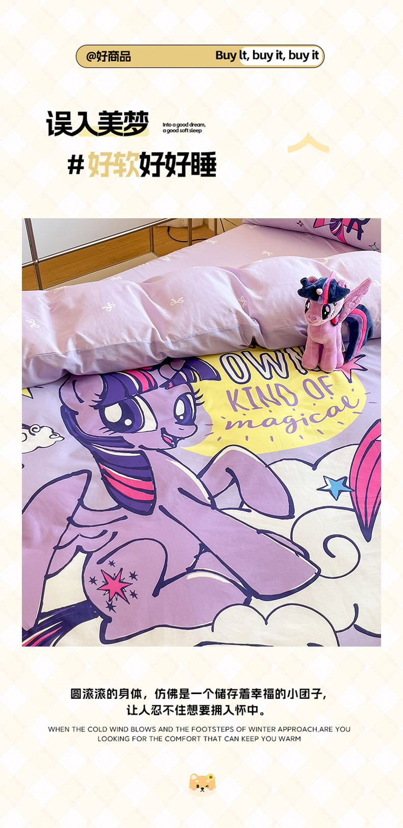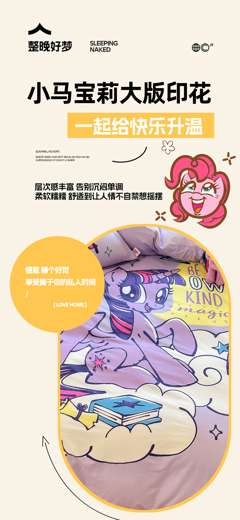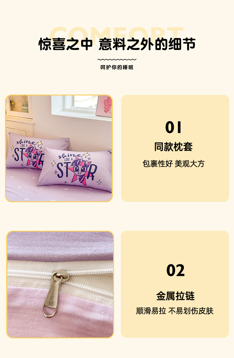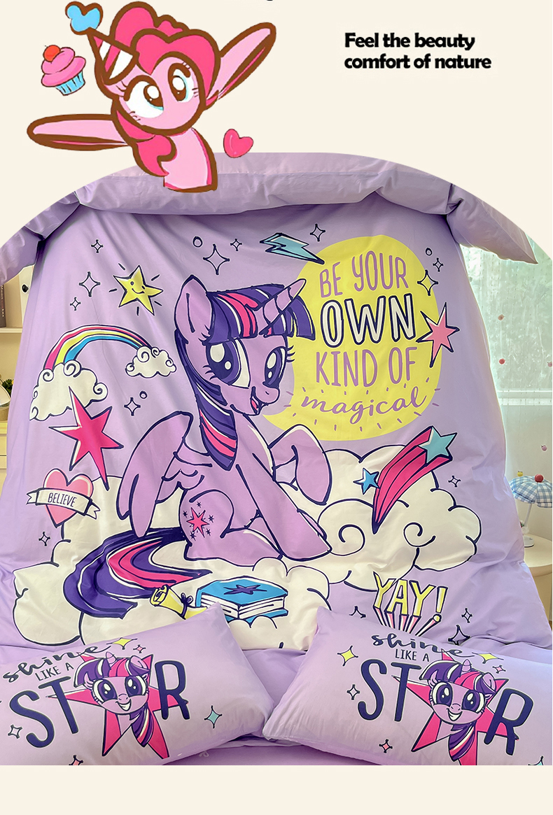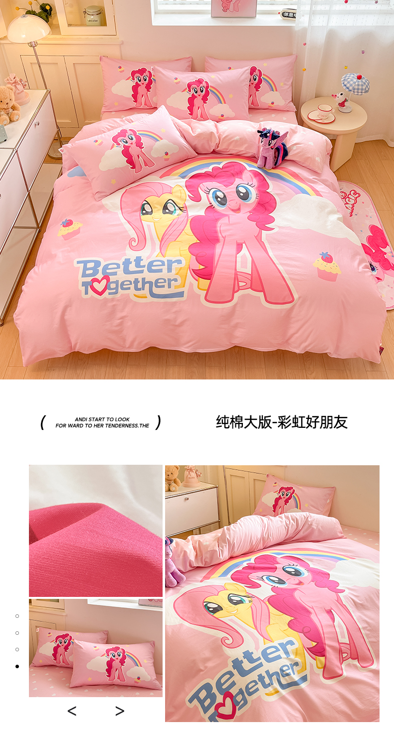 当前位置: 91家纺网 > 商品网购 > 床品套件 > 四件套 > 全棉普通四件套 > 金爱家 2025新款纯棉大版数码印花系列四件套-小马宝莉 纯棉大版-闪亮紫悦