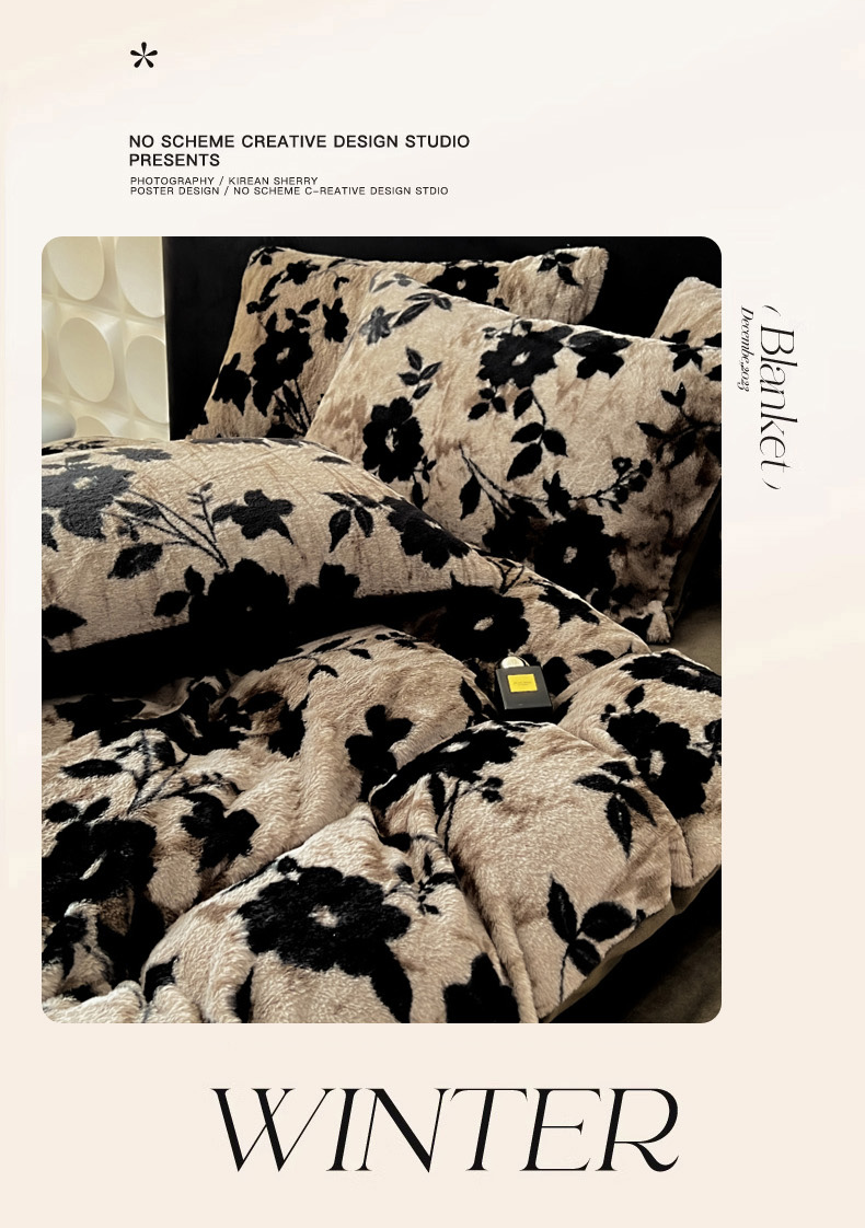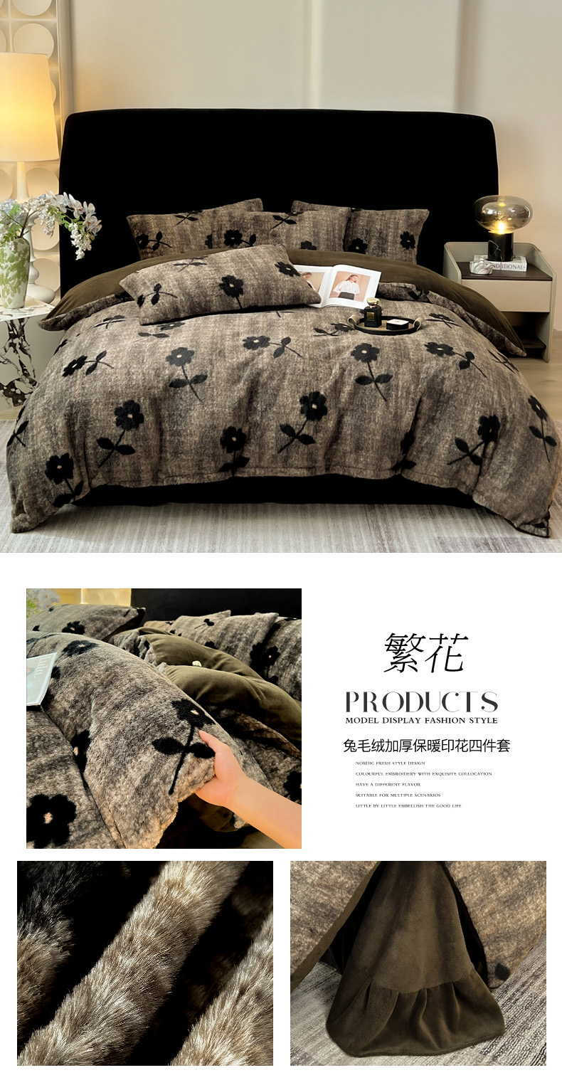 商品名称:米可 2025新款美拉德高克重兔毛绒牛奶绒四件套 繁花